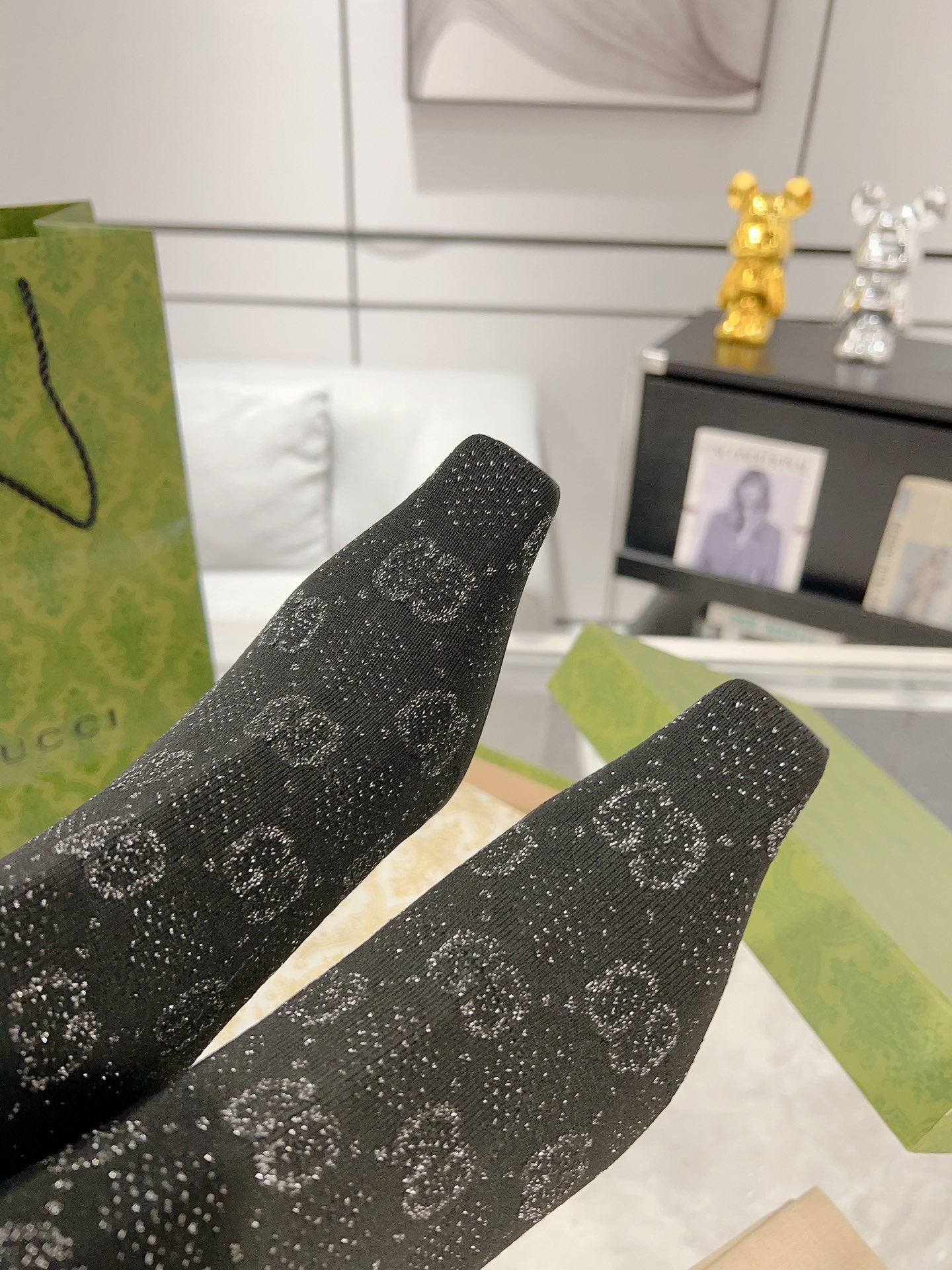 ANKLE BOOTS IN BLACK KNITTED FABRIC