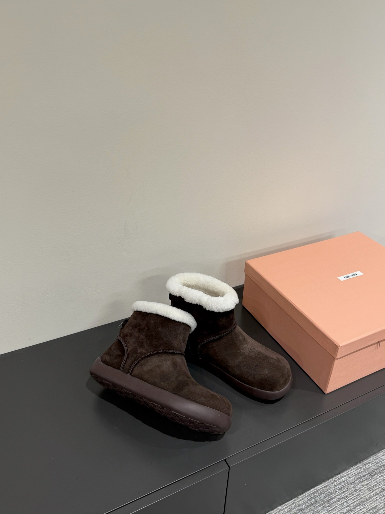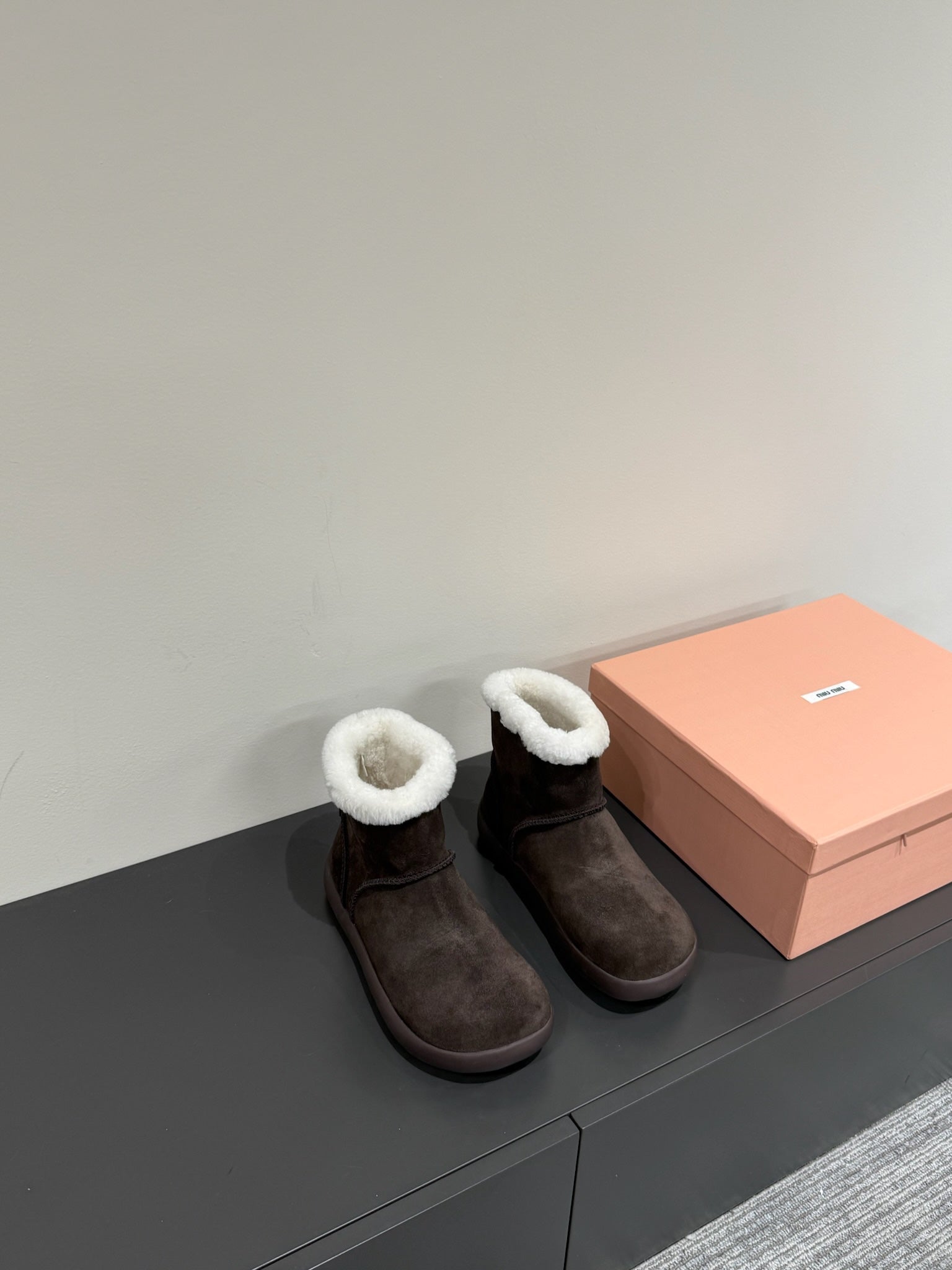 • ANKLE BOOTS IN DARK CHOCOLATE SUEDE AND FLEECE LINING