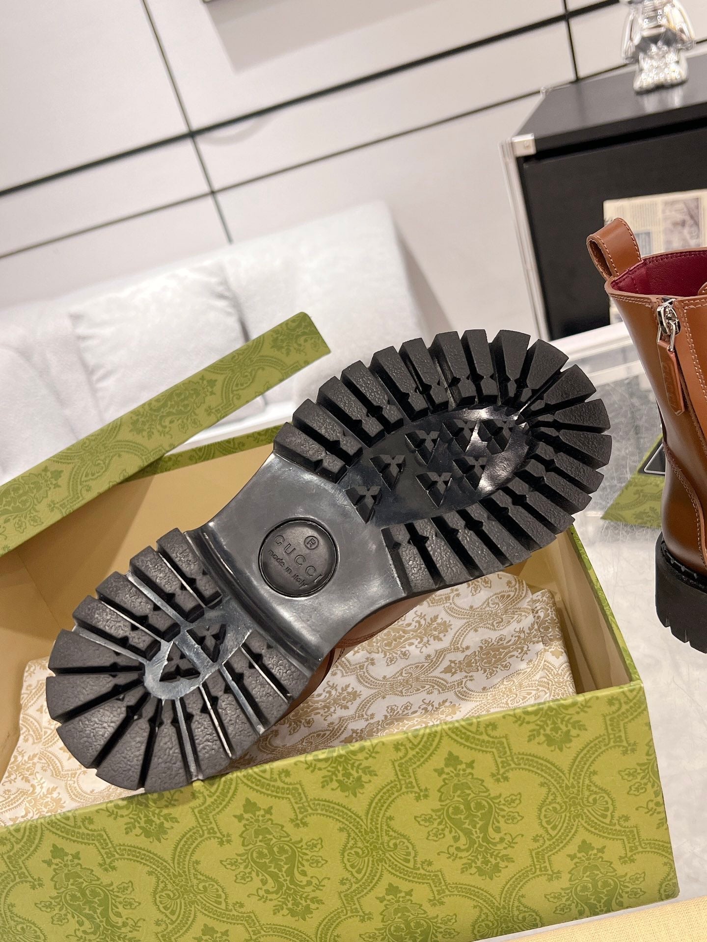 • GG WEB ANKLE BOOTS IN CINNAMON BROWN CALFSKIN