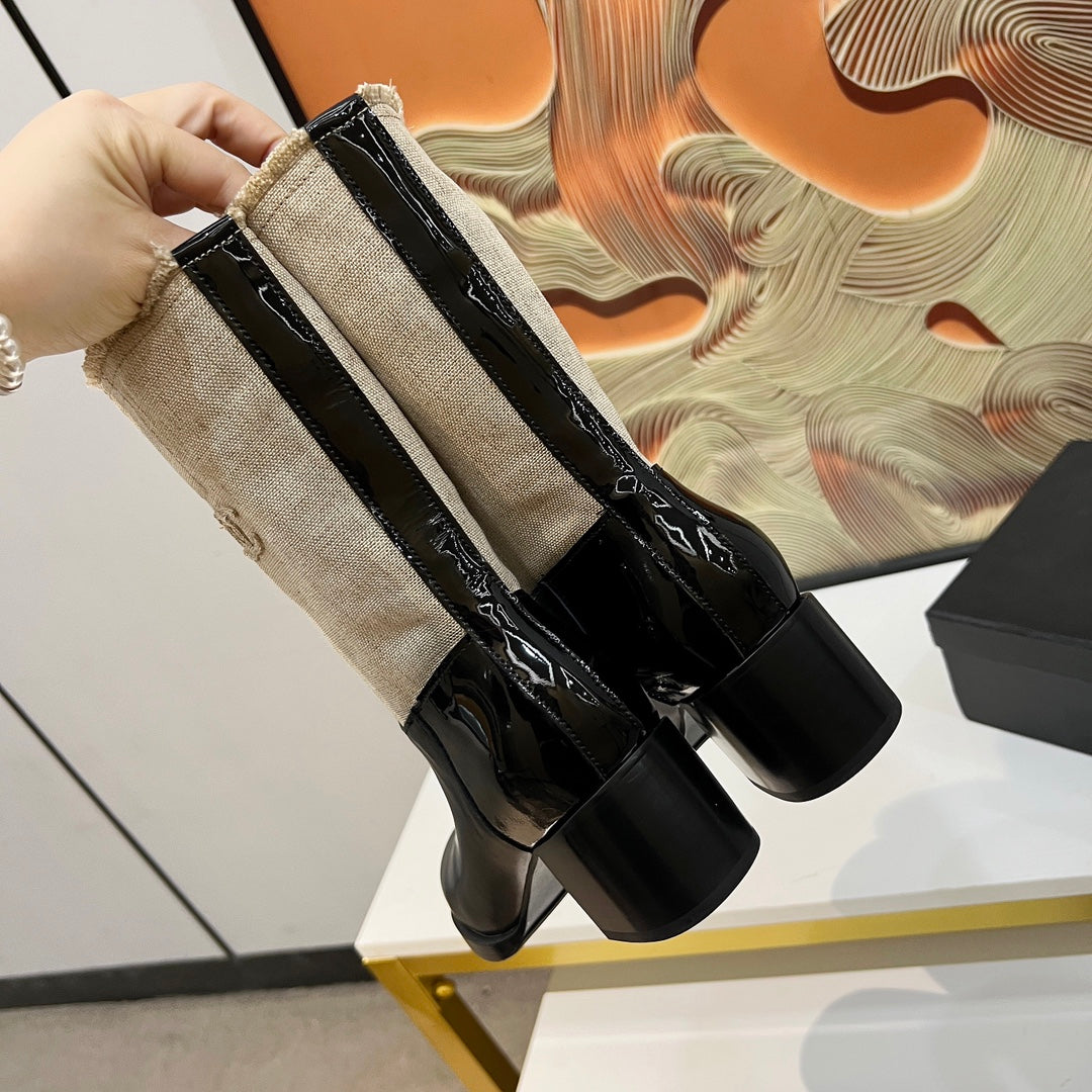 • Material: Lambskin/patent cowhide + original custom fabric