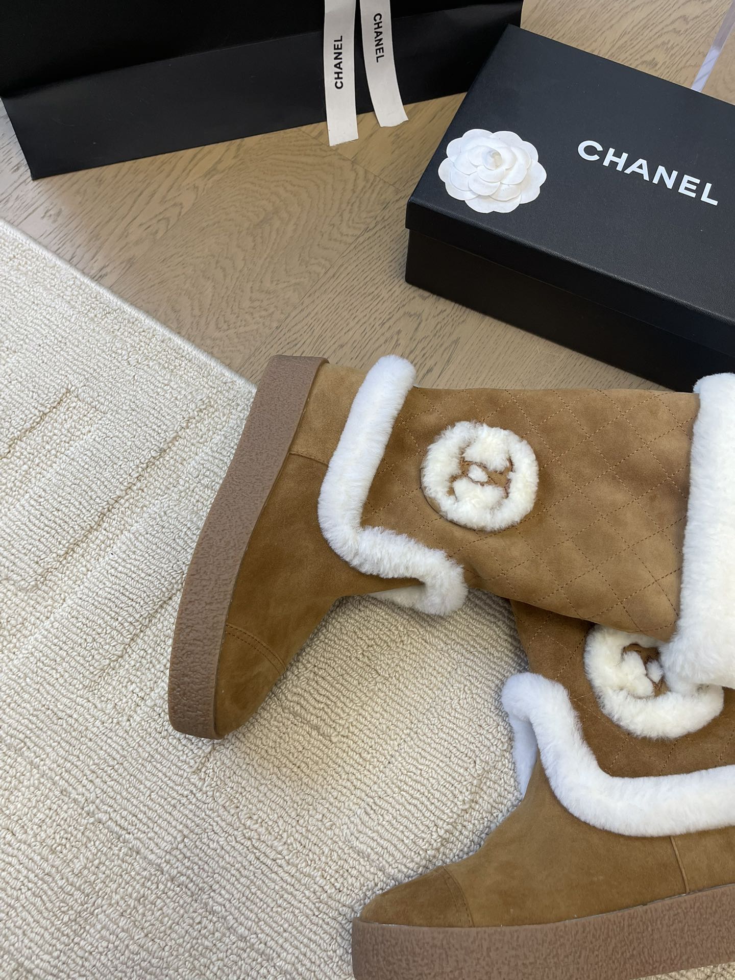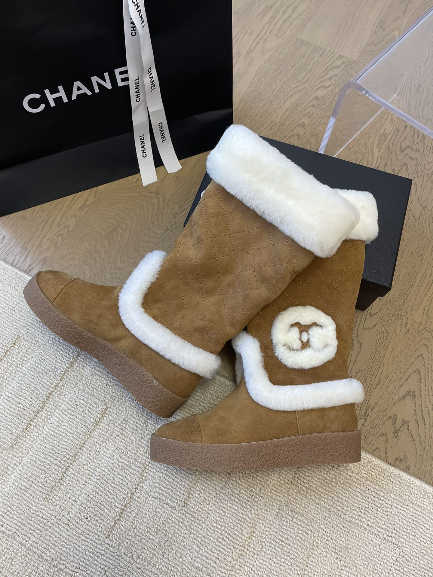 • HIGH BOOTS IN CIDER BROWN SUEDE AND FLEECE LINING