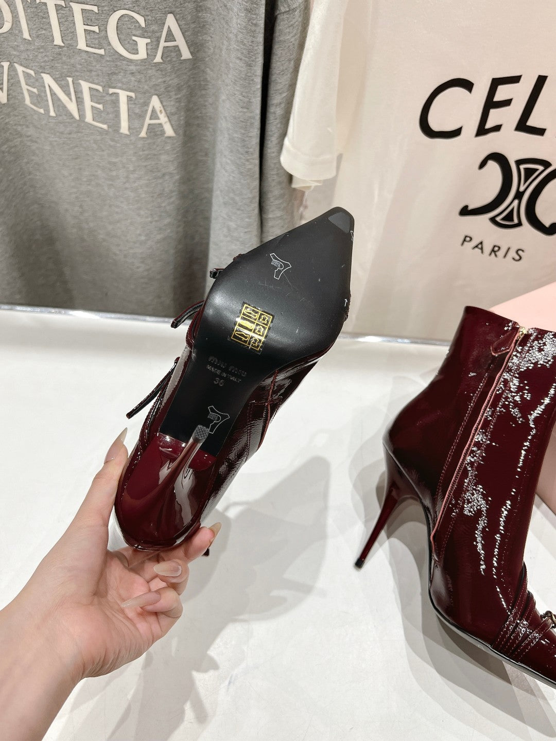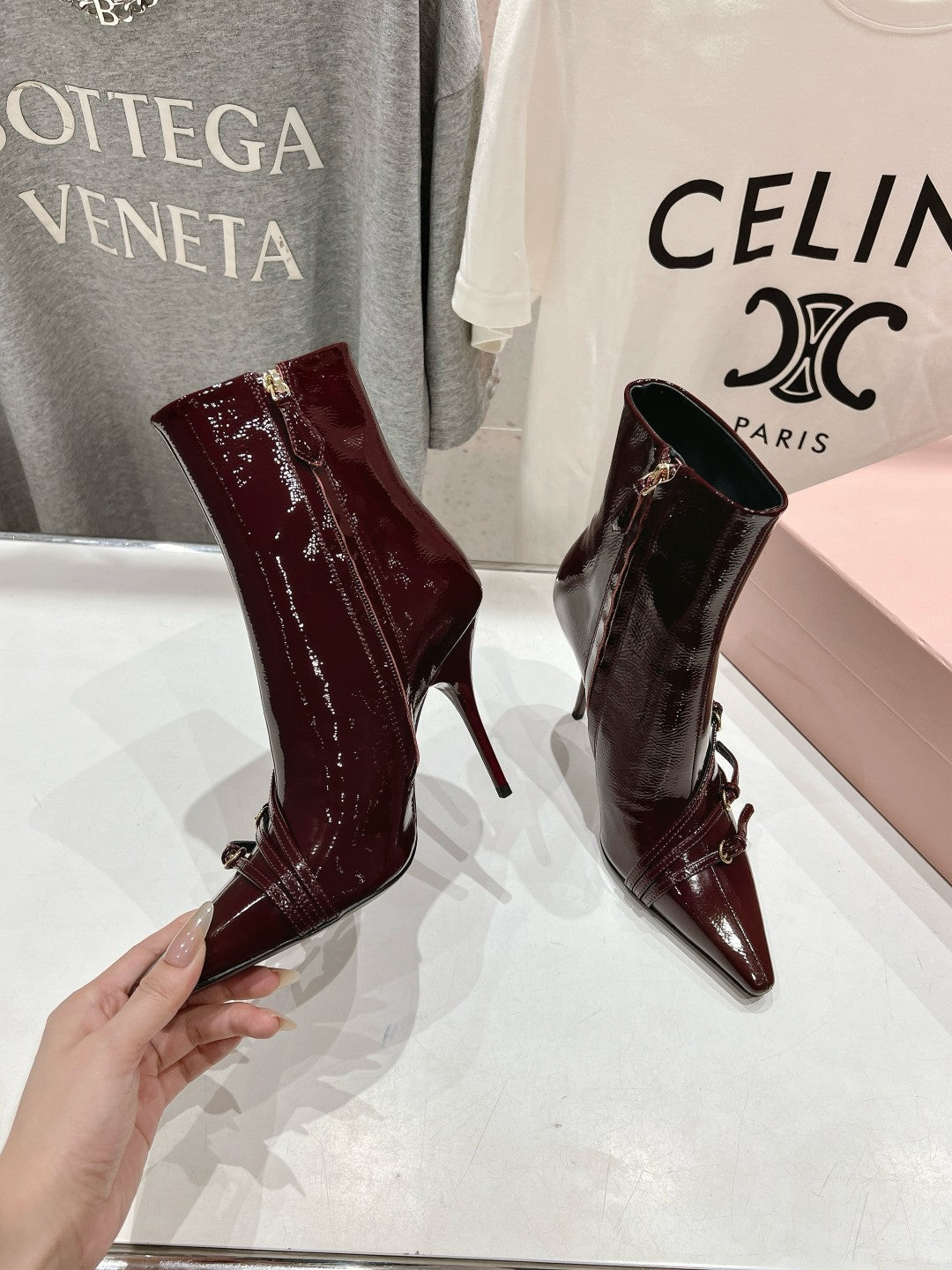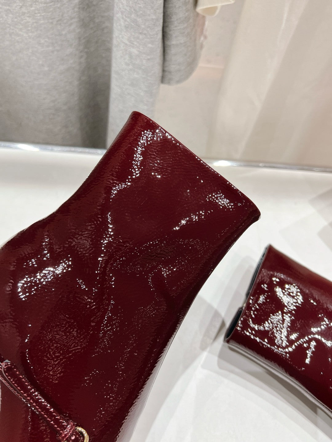 • HIGH HEEL POINTED-TOE BOOTS IN WINE RED PATENT LAMBSKIN