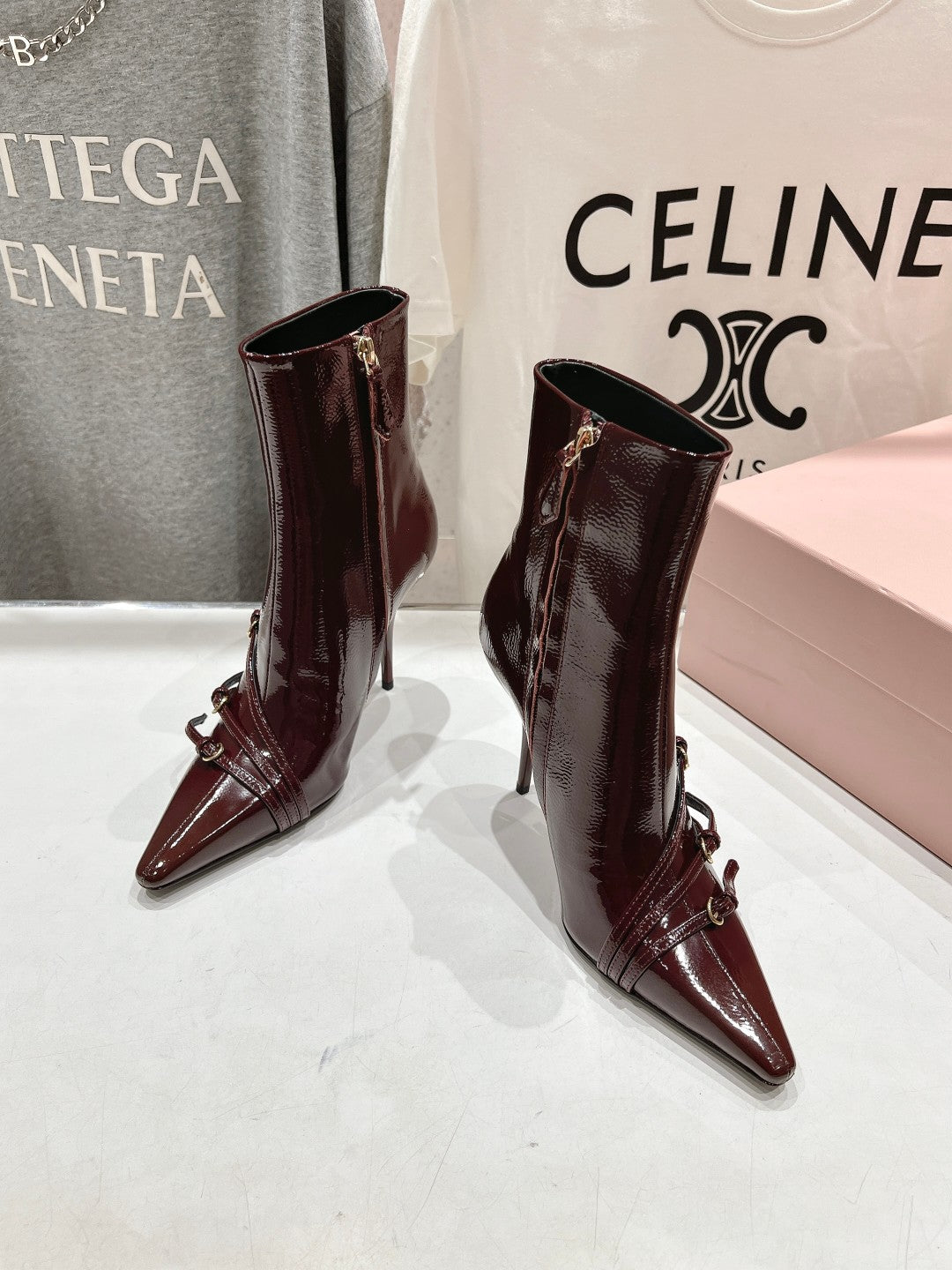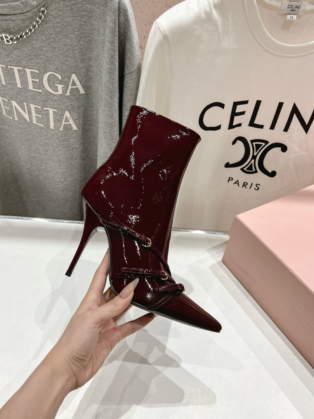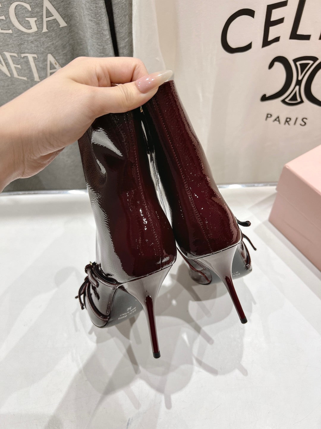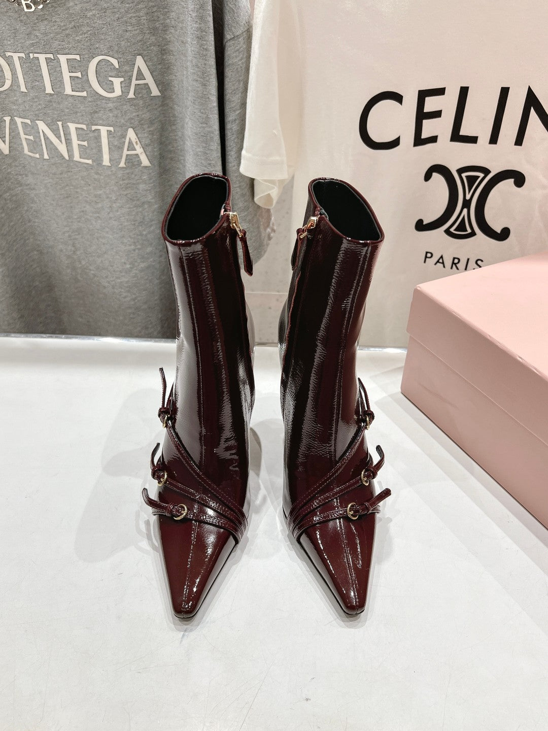 • HIGH HEEL POINTED-TOE BOOTS IN WINE RED PATENT LAMBSKIN