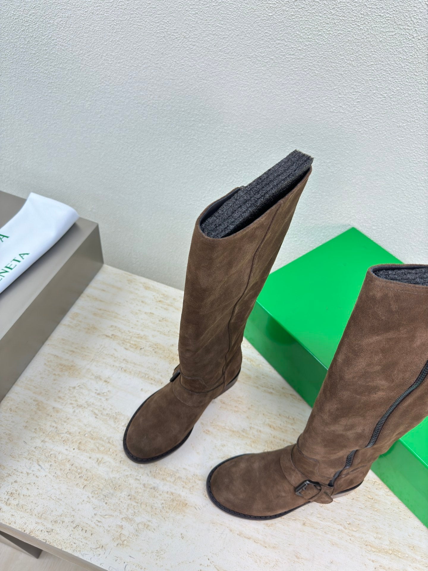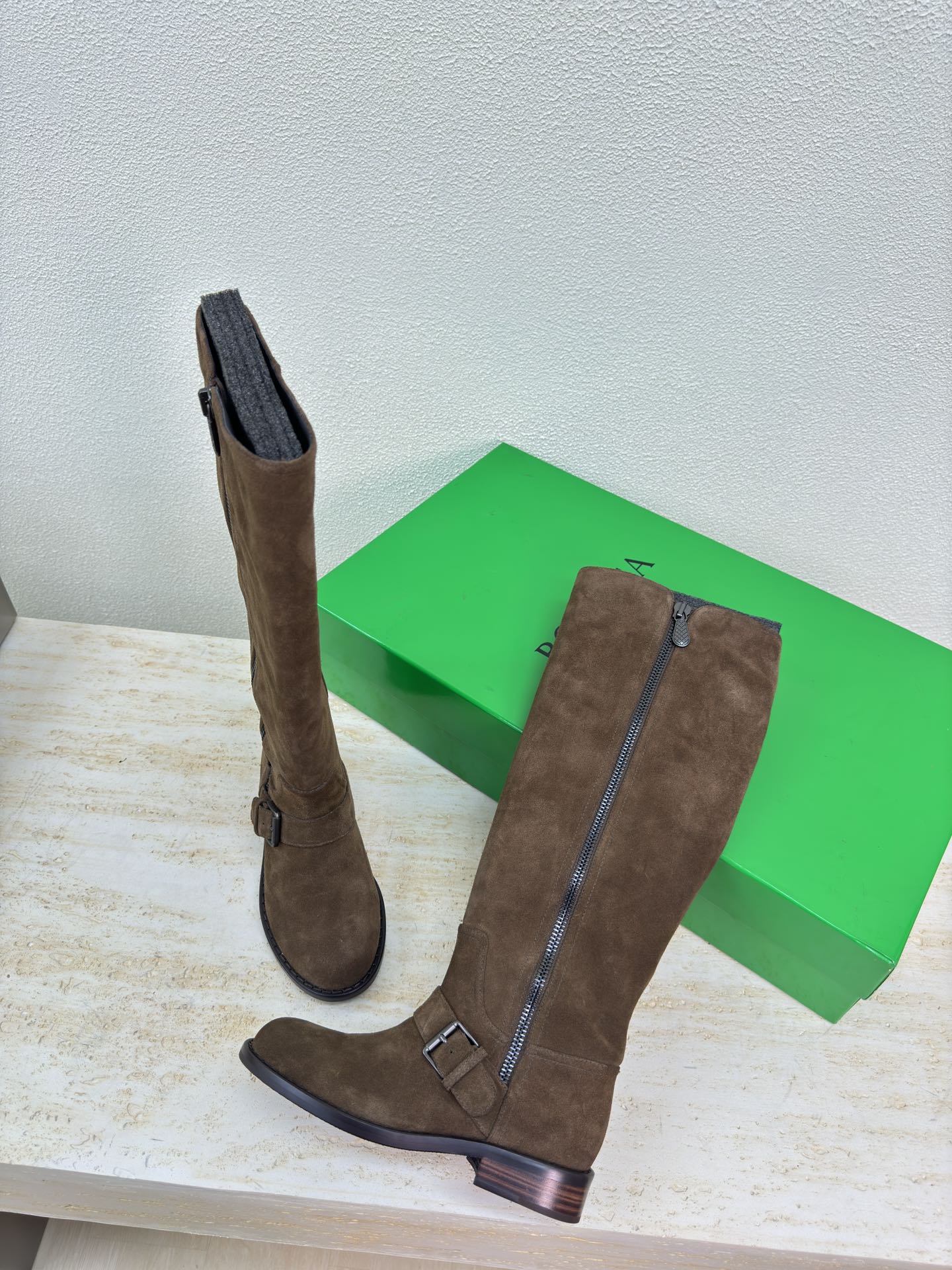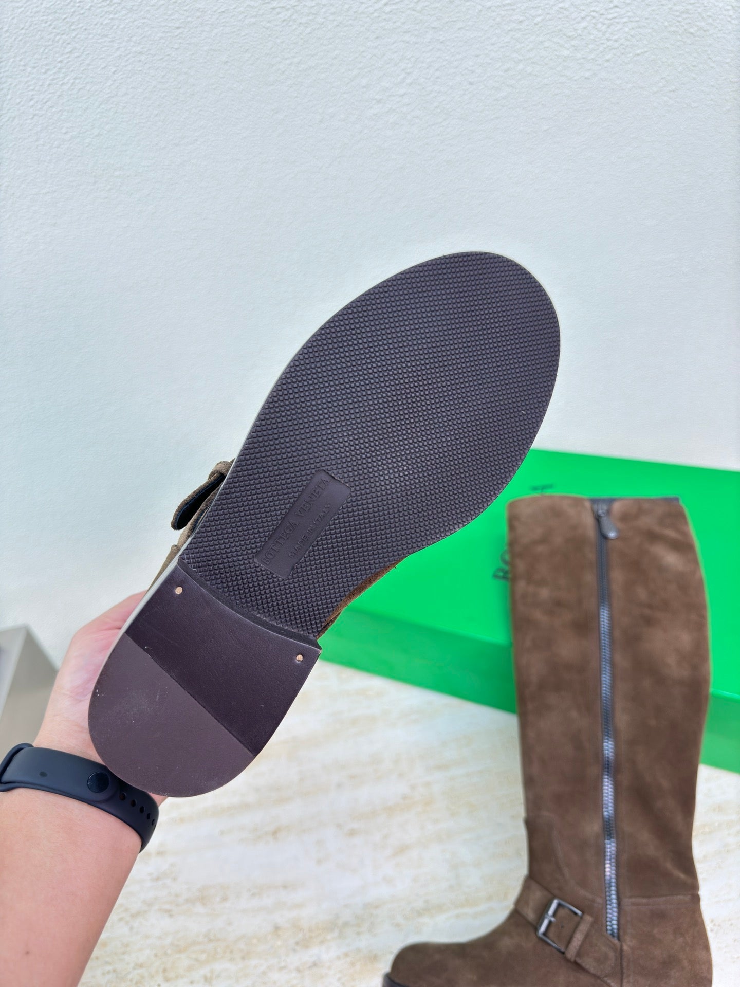 • Material: Suede and Angola coffee-colored cowhide lining