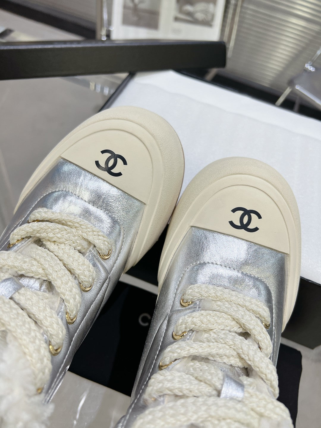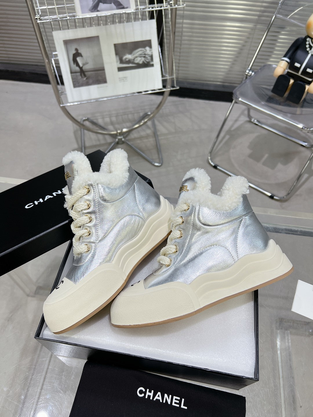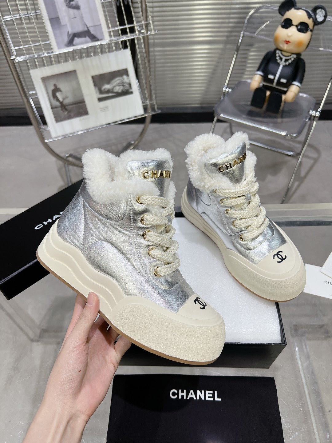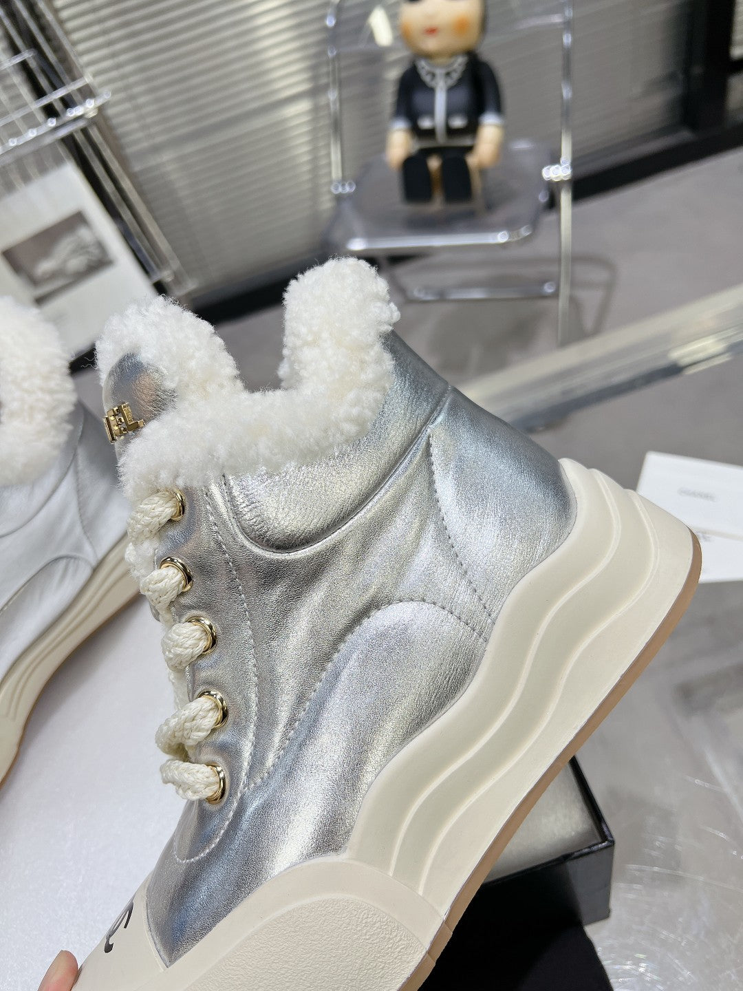• MARTIN BOOTS IN SILVER CALFSKIN AND LAMB FUR LINING