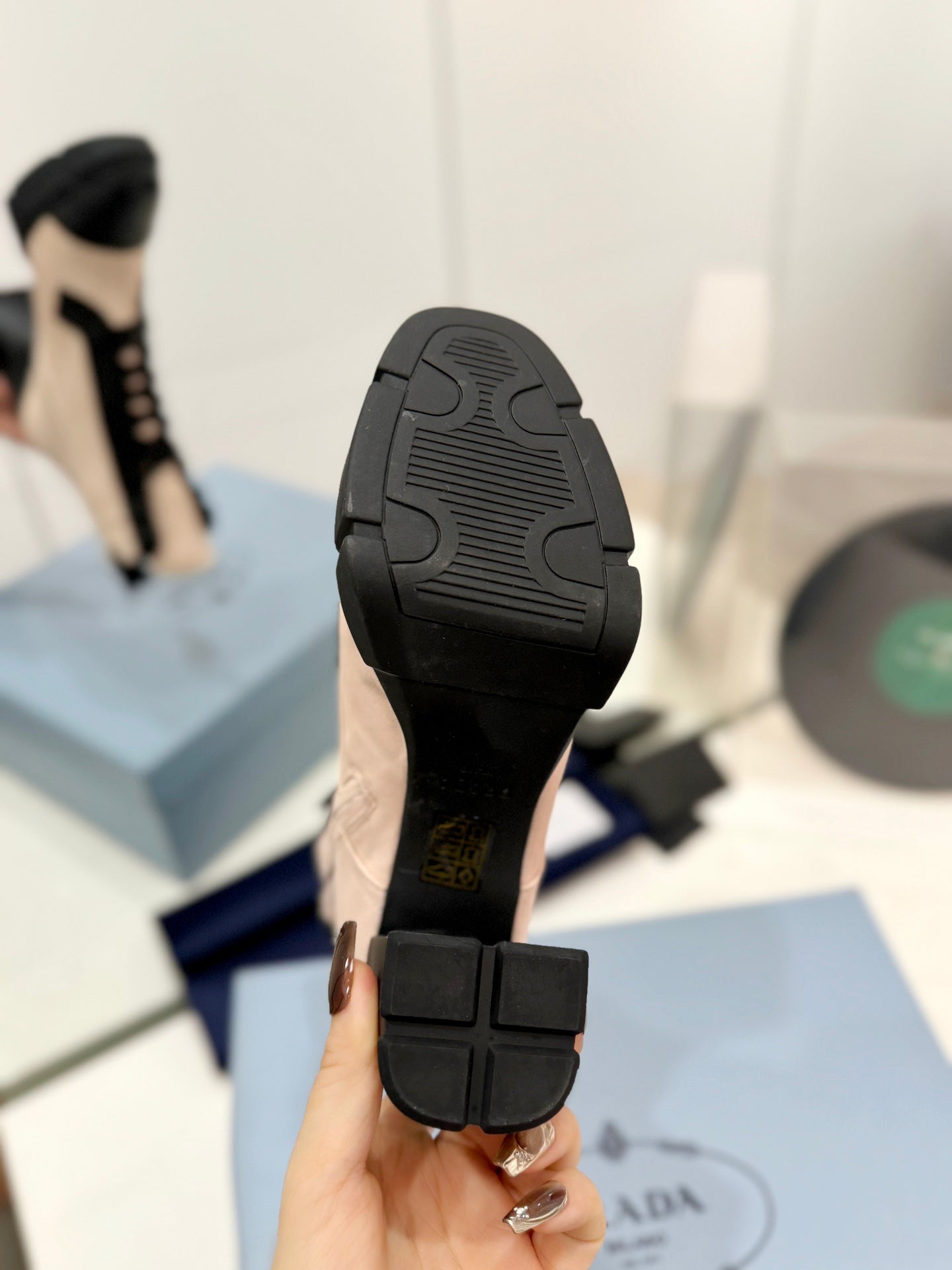 PRA RE-NYLON AND LEATHER BOOTIES PASTEL PINK