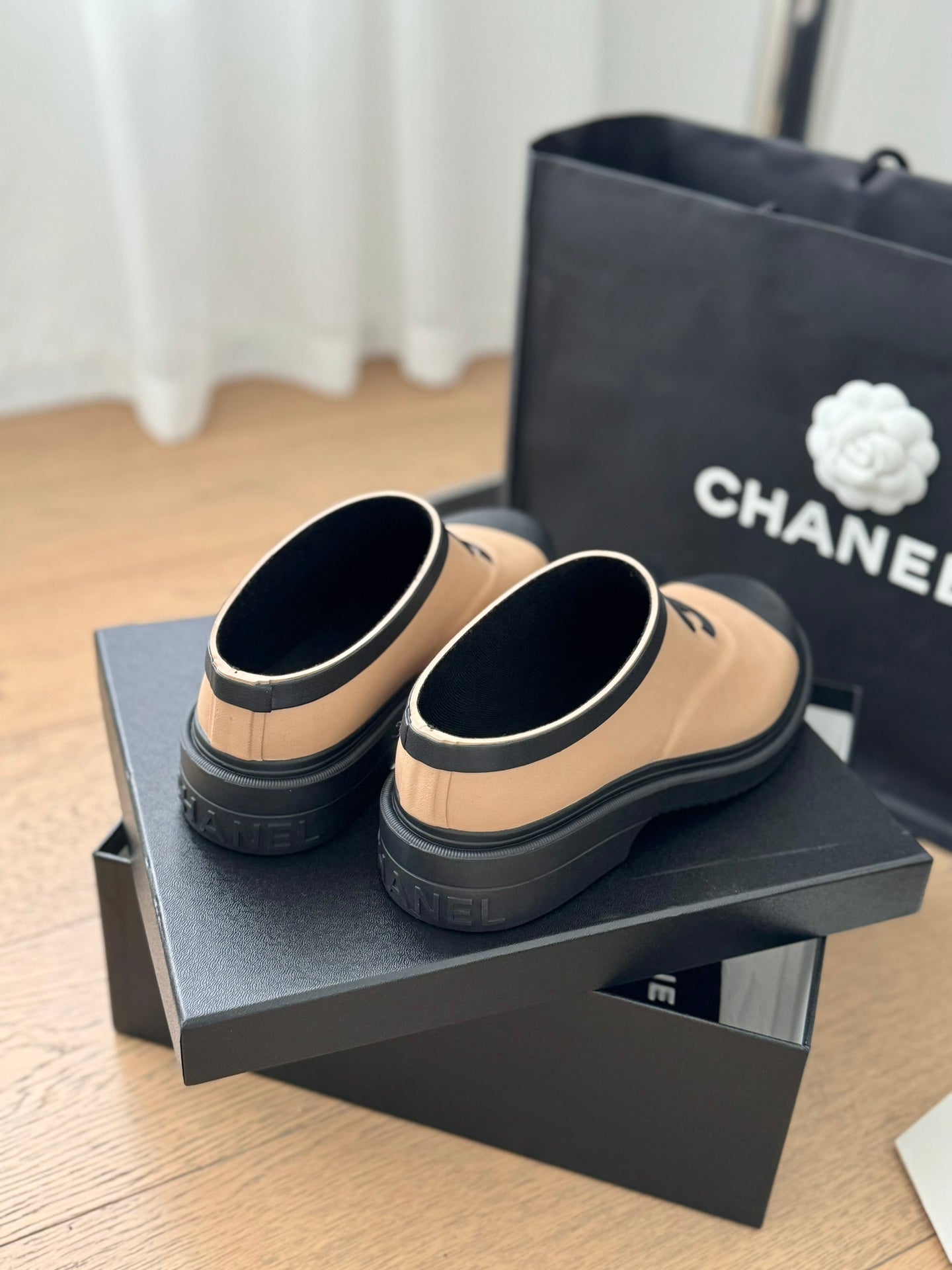 • SHORT BOOTS IN BEIGE CREAM MIX BLACK RUBBER