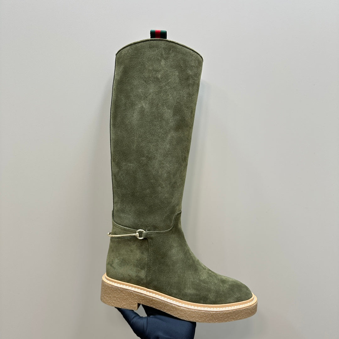 • SLIM HORSEBIT KNEE BOOTS WITH WEB IN KHAKI GREEN SUEDE