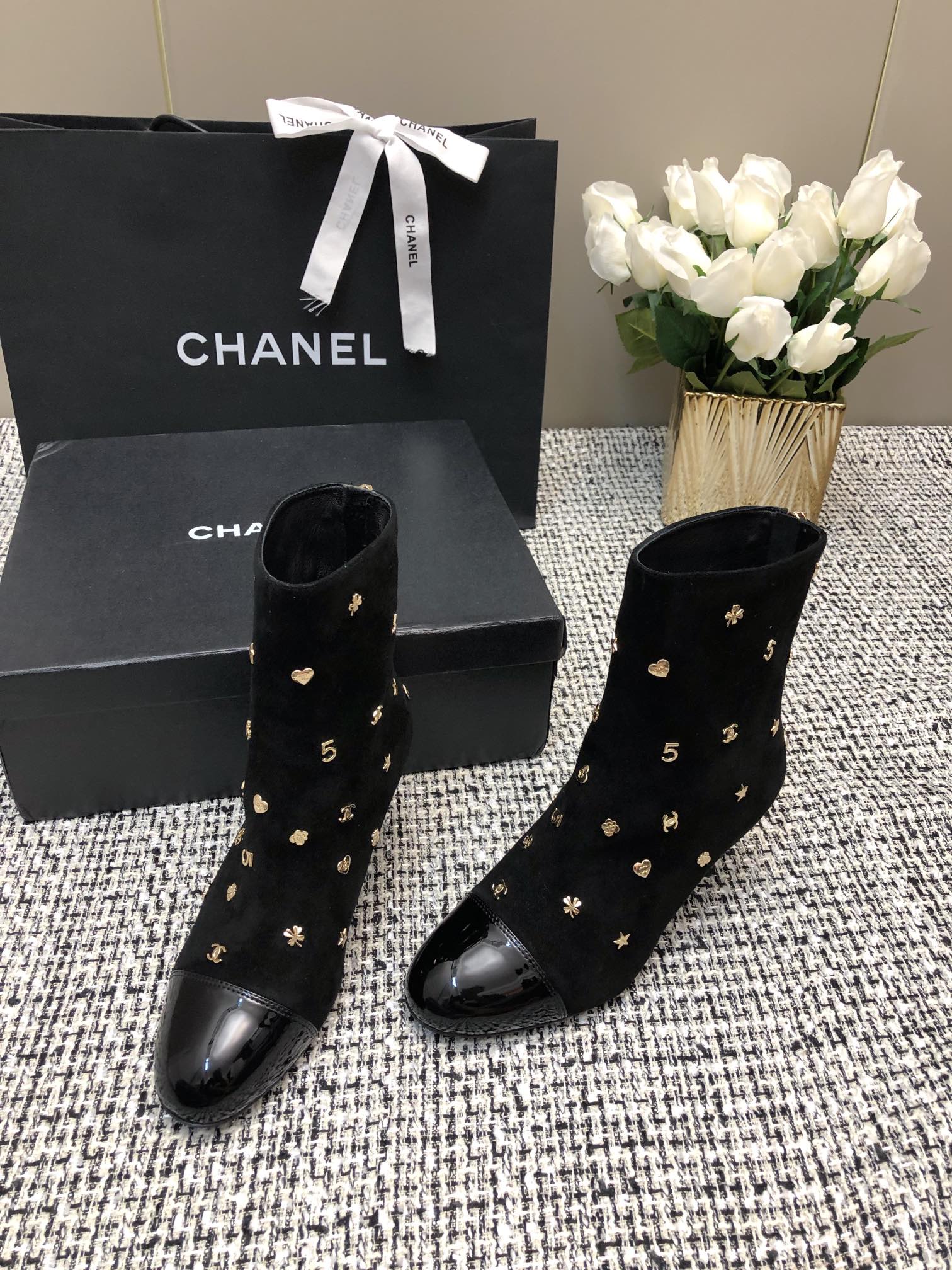 SHORT BOOTS BLACK SUEDE LAMBSKIN ATTACH METAL