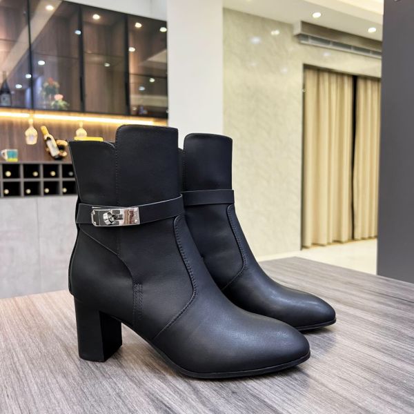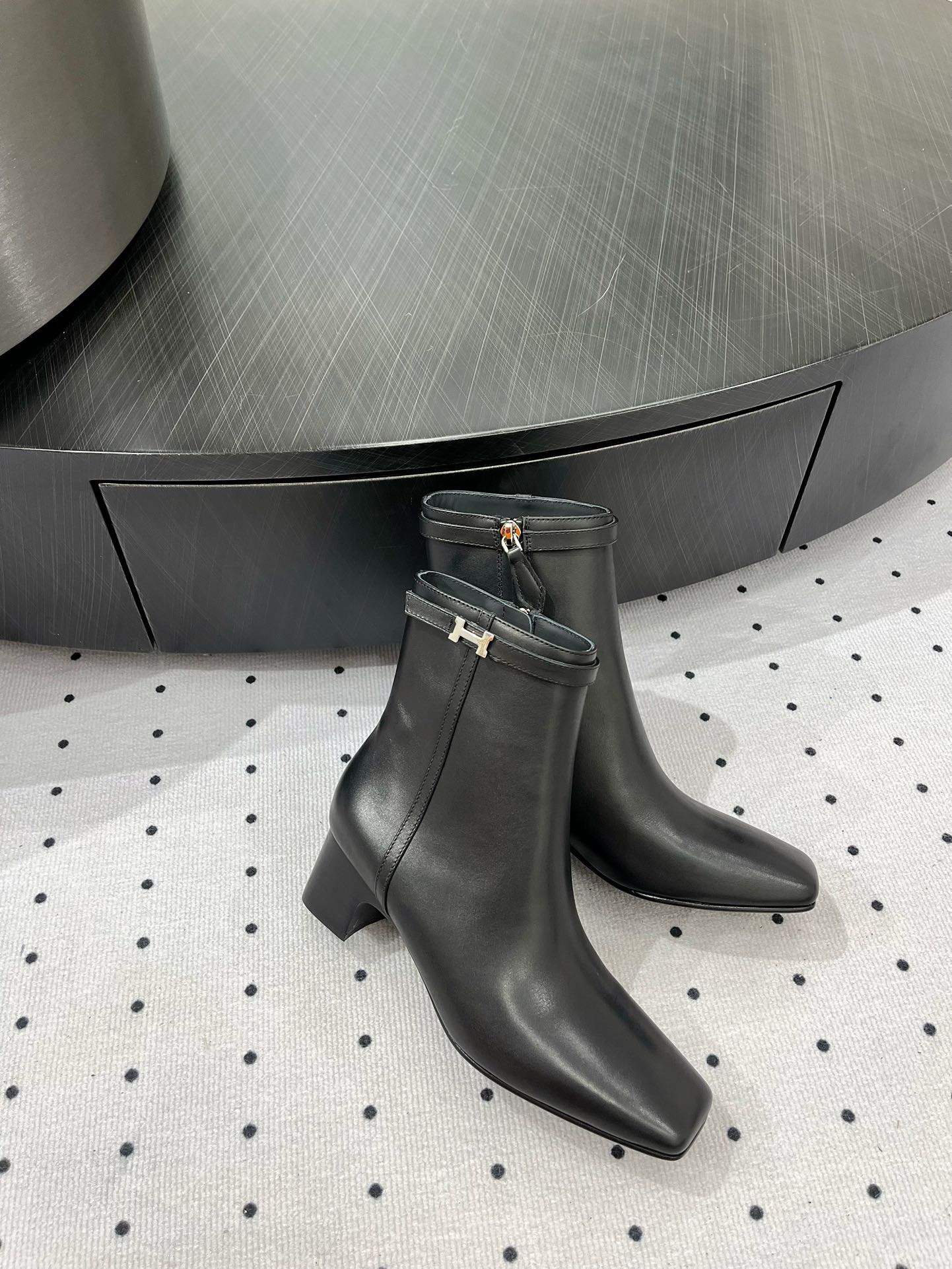 HERM Jill 60 Ankle Boots in Black Calfskin
