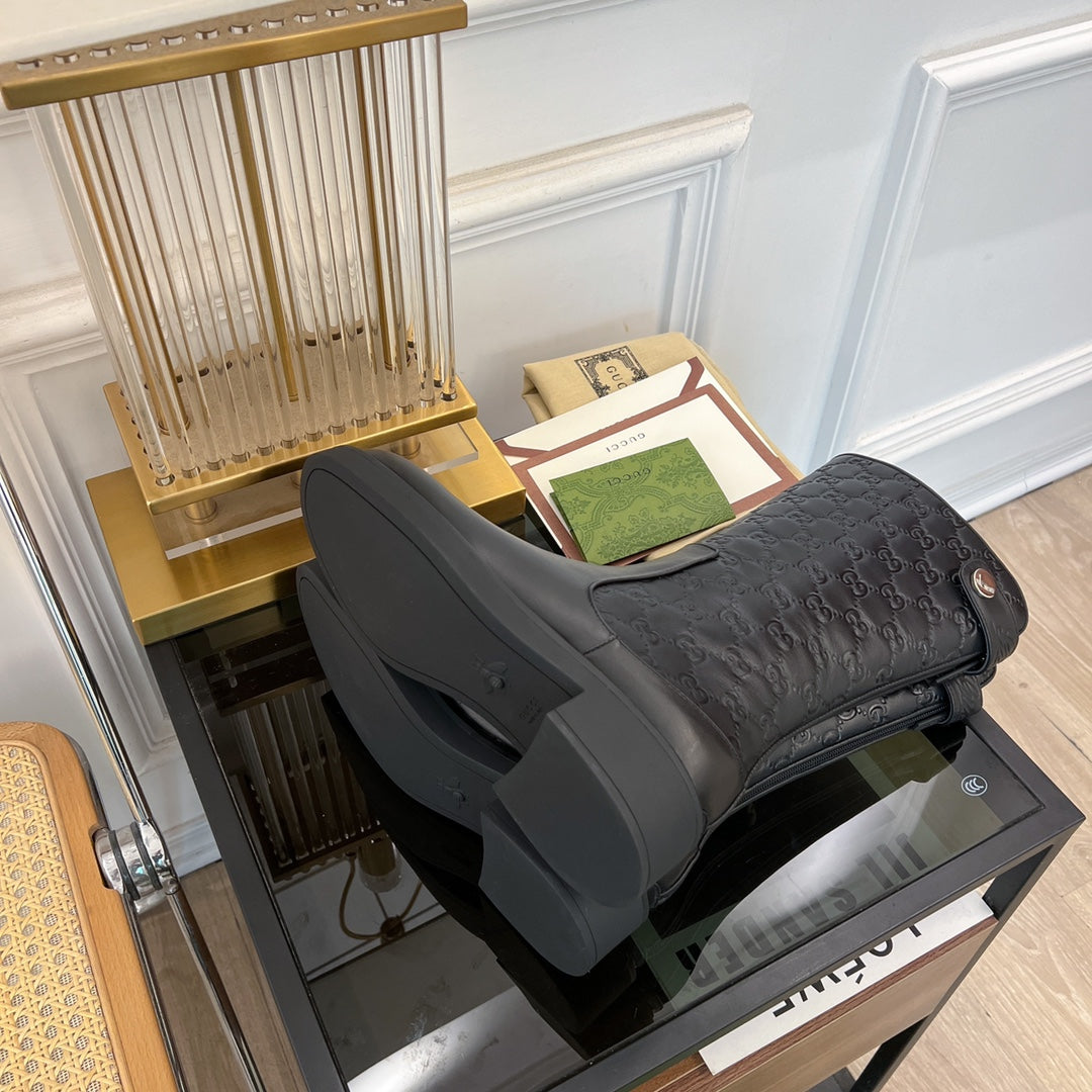 GG CLASSIC LOGO KNEE HIGH BOOTS IN BLACK CALFSKIN