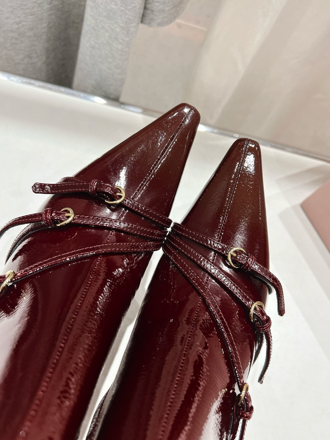 HIGH HEEL POINTED-TOE BOOTS IN WINE RED PATENT LAMBSKIN