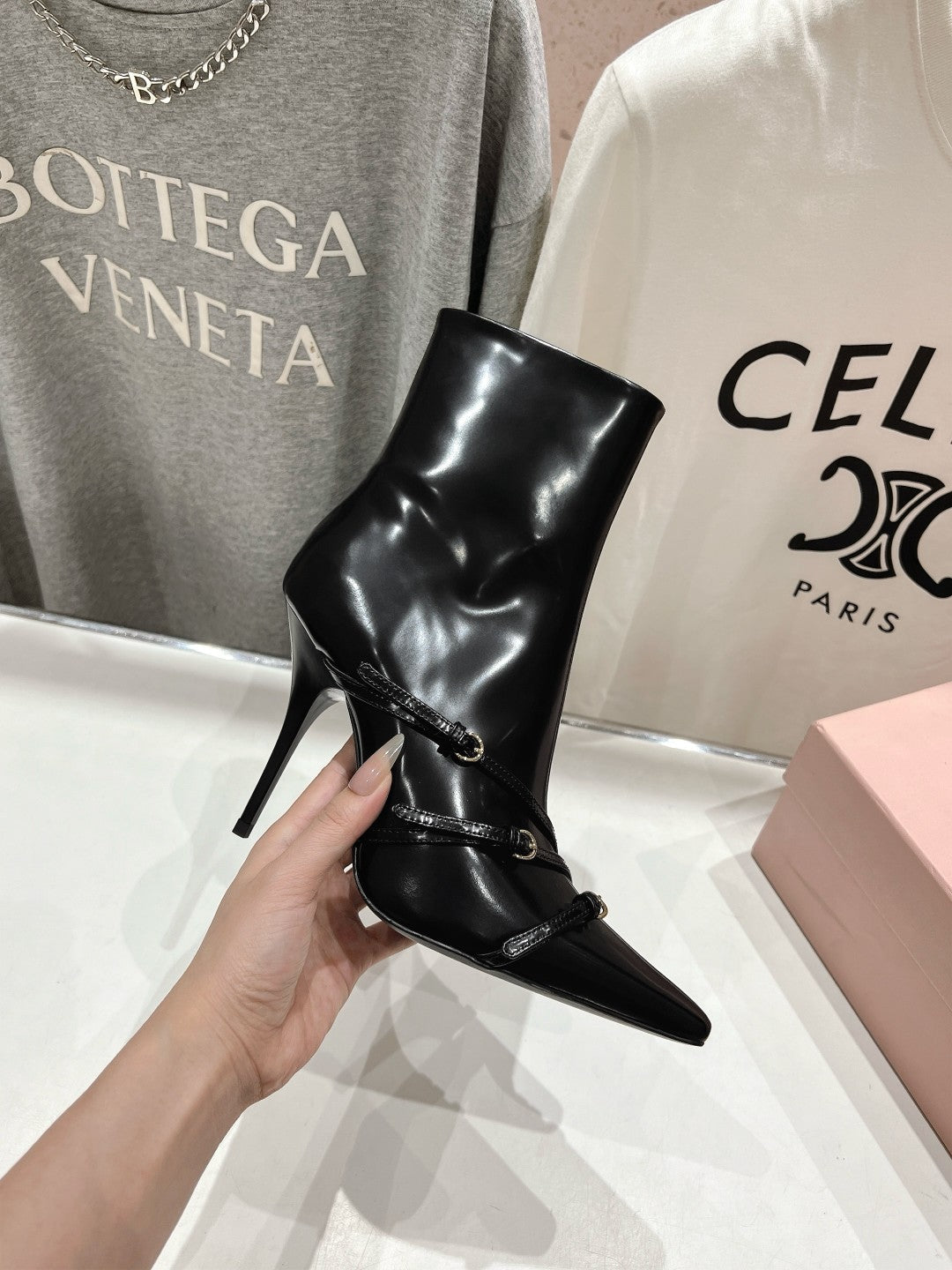 HIGH HEEL POINTED-TOE BOOTS IN BLACK SHINY LAMBSKIN