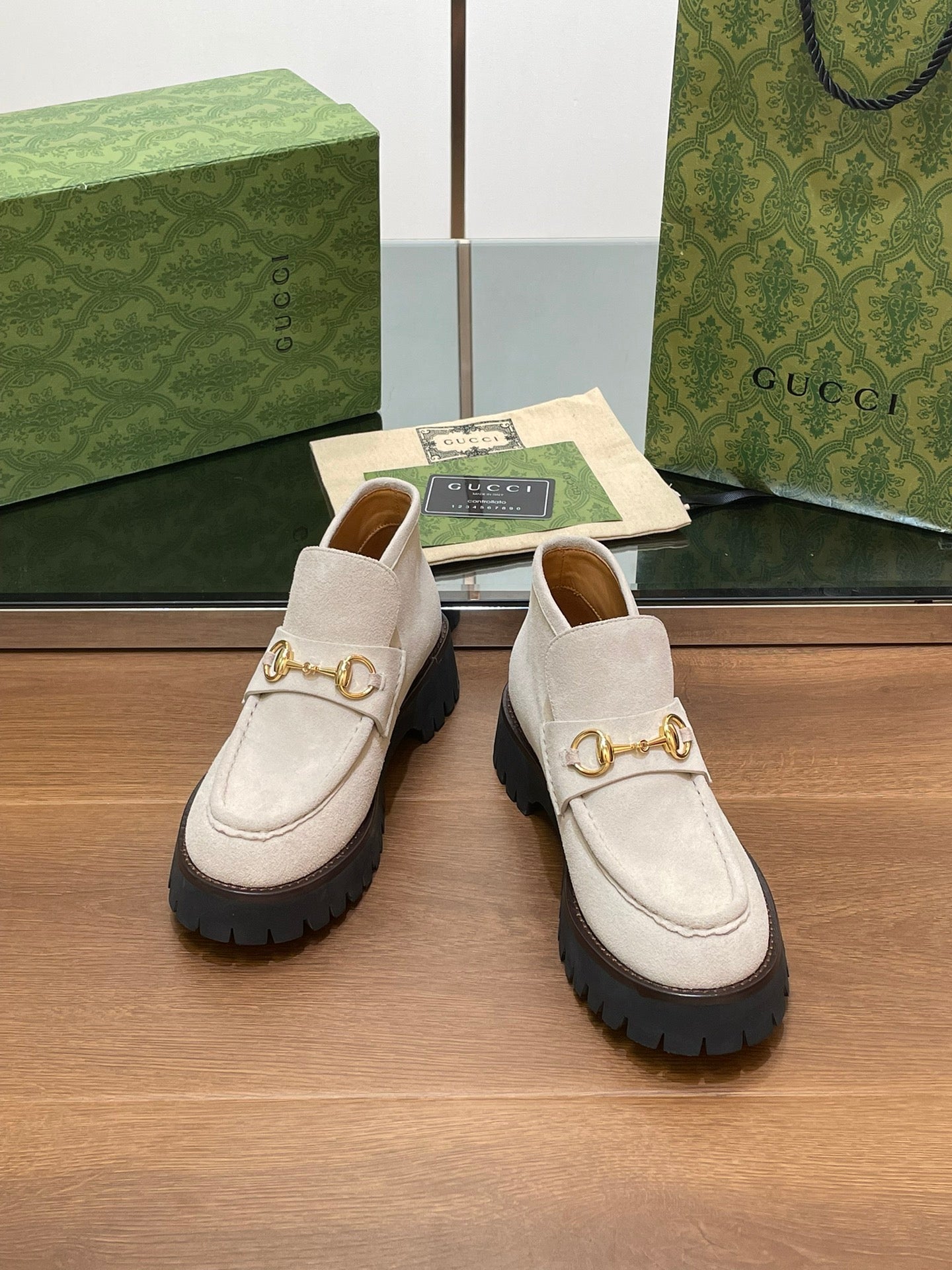 GG WOMEN'S HORSEBIT ANKLE BOOTS 4.5CM IN WHITE SUEDE