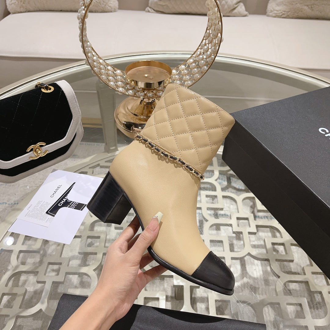 LOW-CUT BOOTS IN SAND YELLOW MIX BLACK CALFSKIN