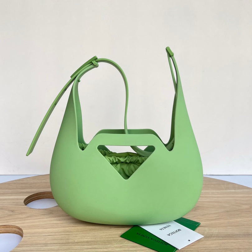 SHOULDER BAG 27 IN FEIJOA GREEN RUBBER AND NYLON FABRIC