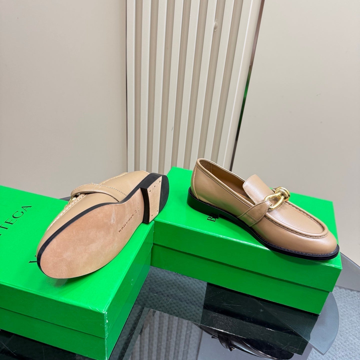 ASTAIRE LOAFER IN LIGHT BROWN CALFSKIN WITH GOLD HARDWARE