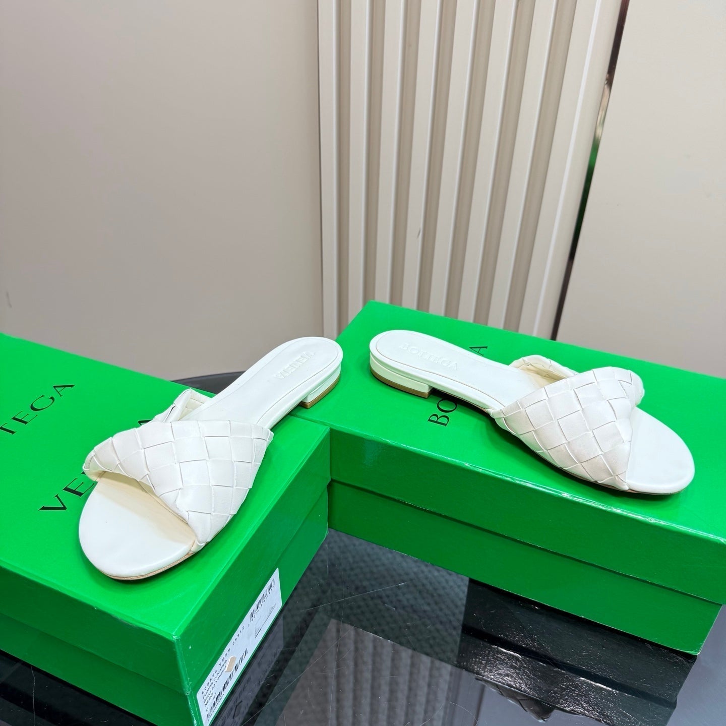 BLINK FLAT MULE IN WHITE INTRECCIATO LEATHER