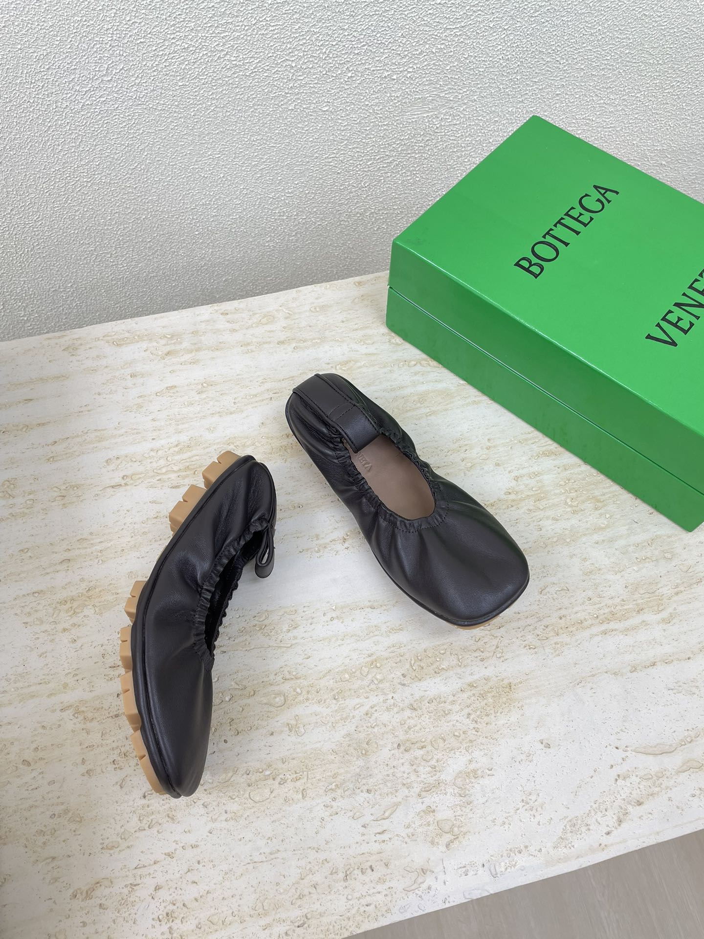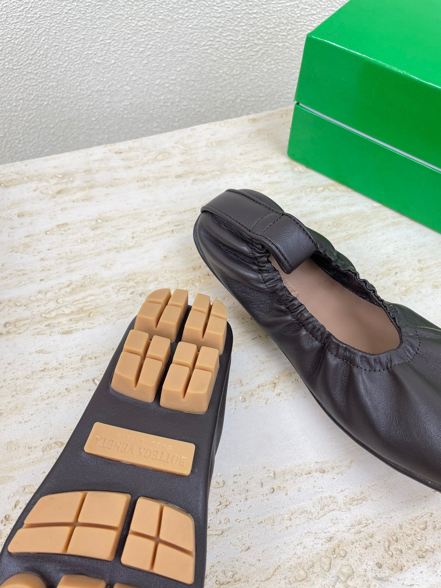 ELASTIC BALLERINA FLATS IN CHOCOLATE BROWN LAMBSKIN