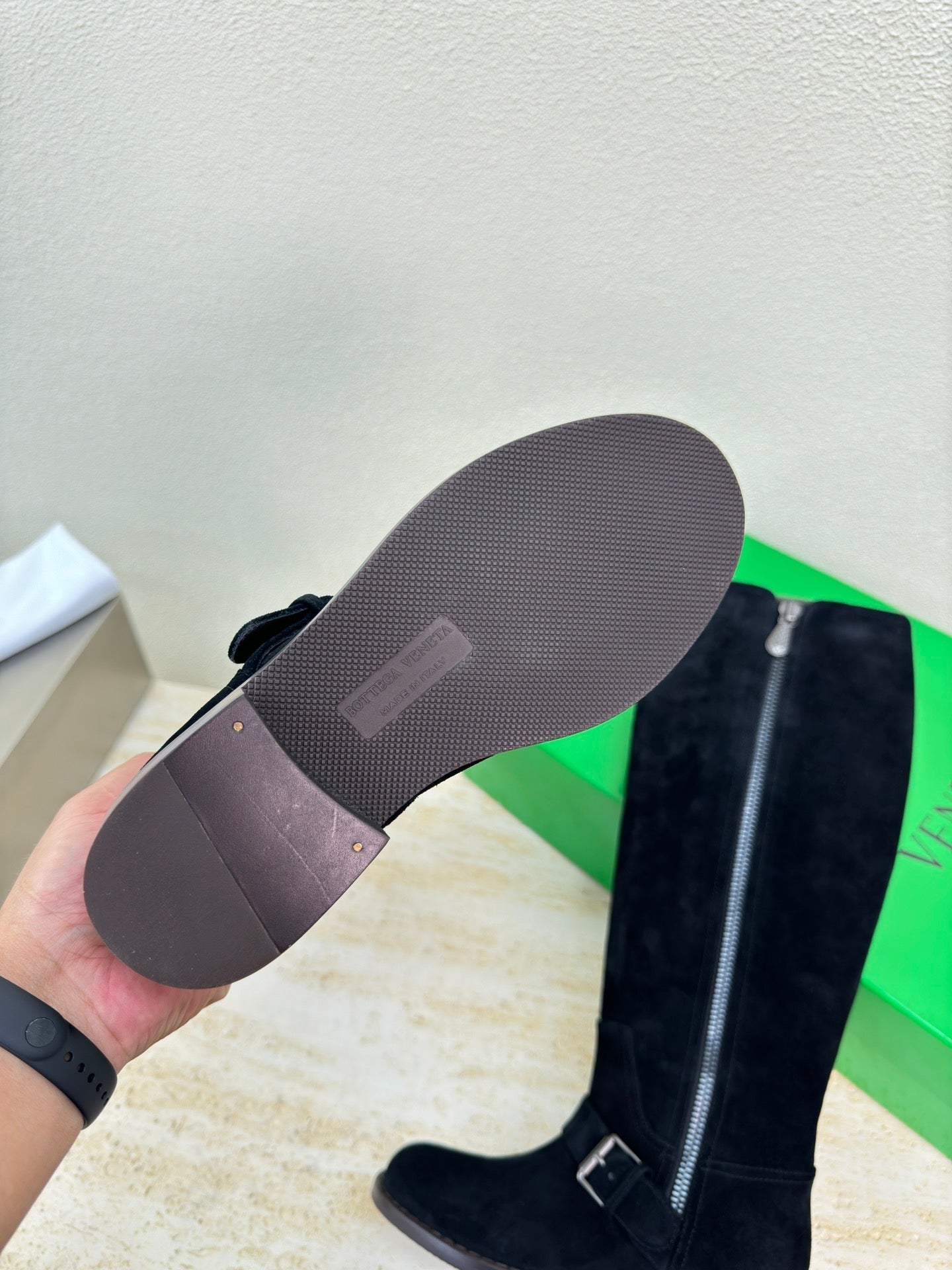 • Material: Suede and Angola coffee-colored cowhide lining