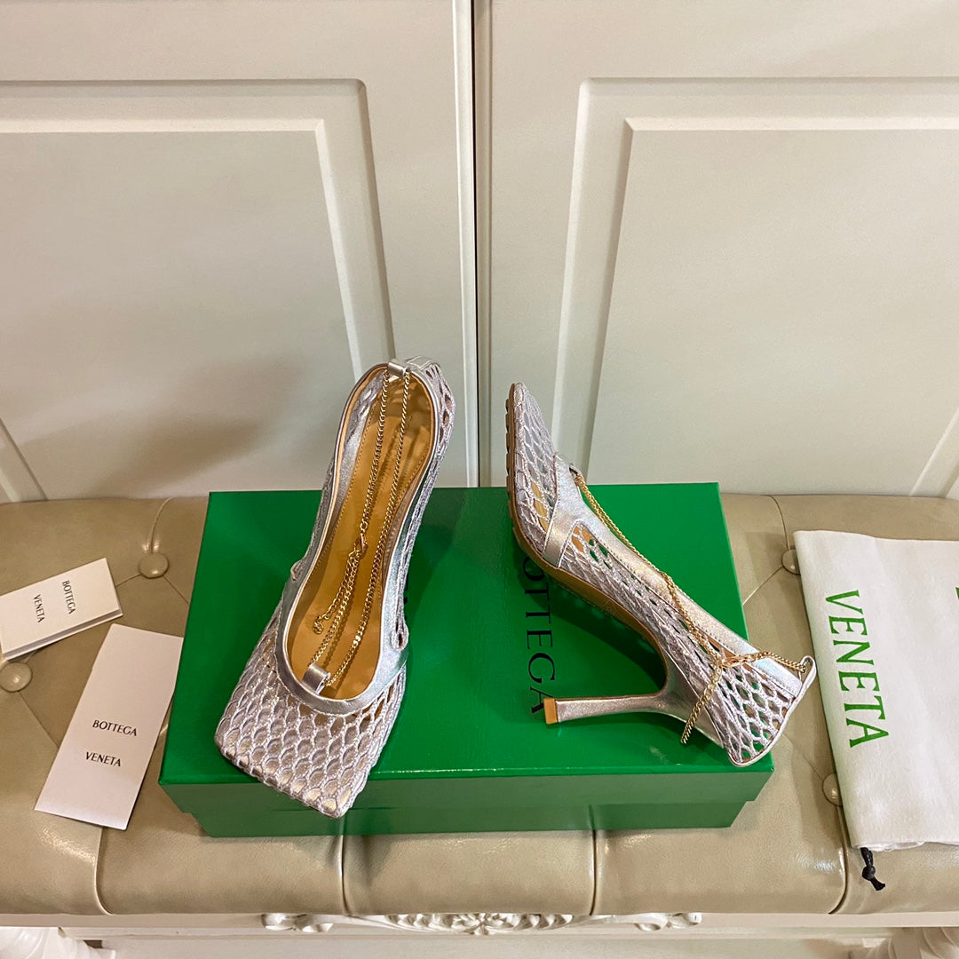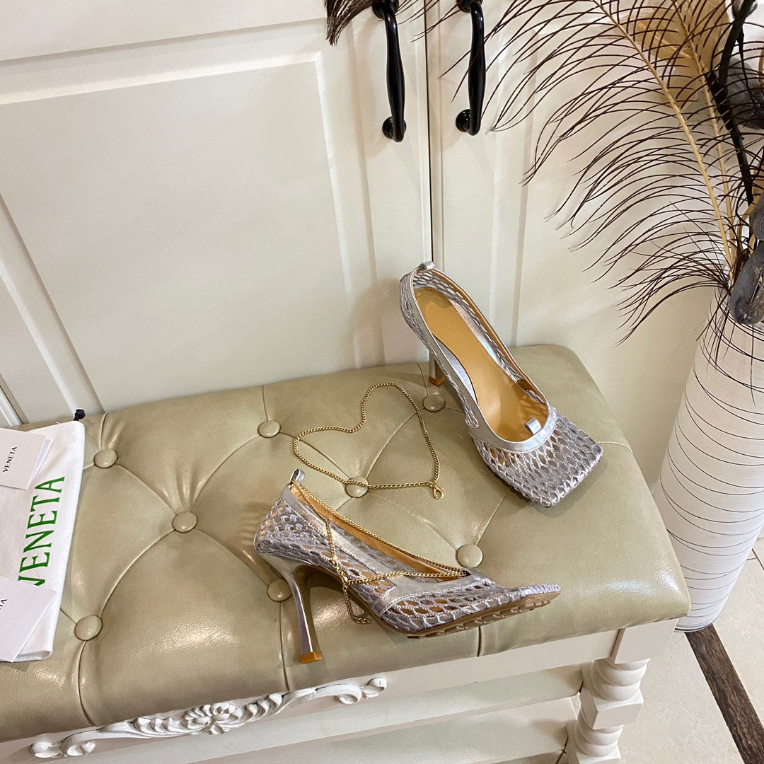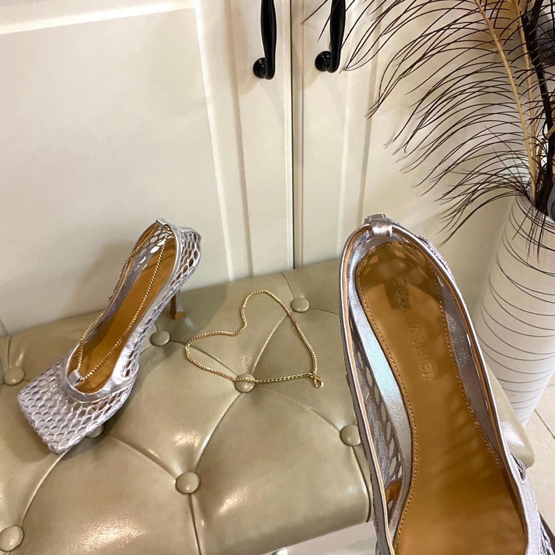 • Material: Metallized mesh and leather