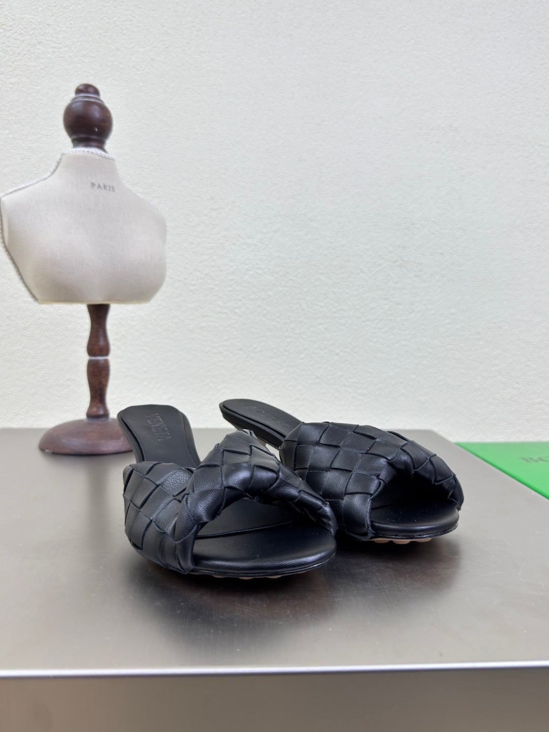 BLINK FLAT MULE IN BLACK INTRECCIATO LEATHER