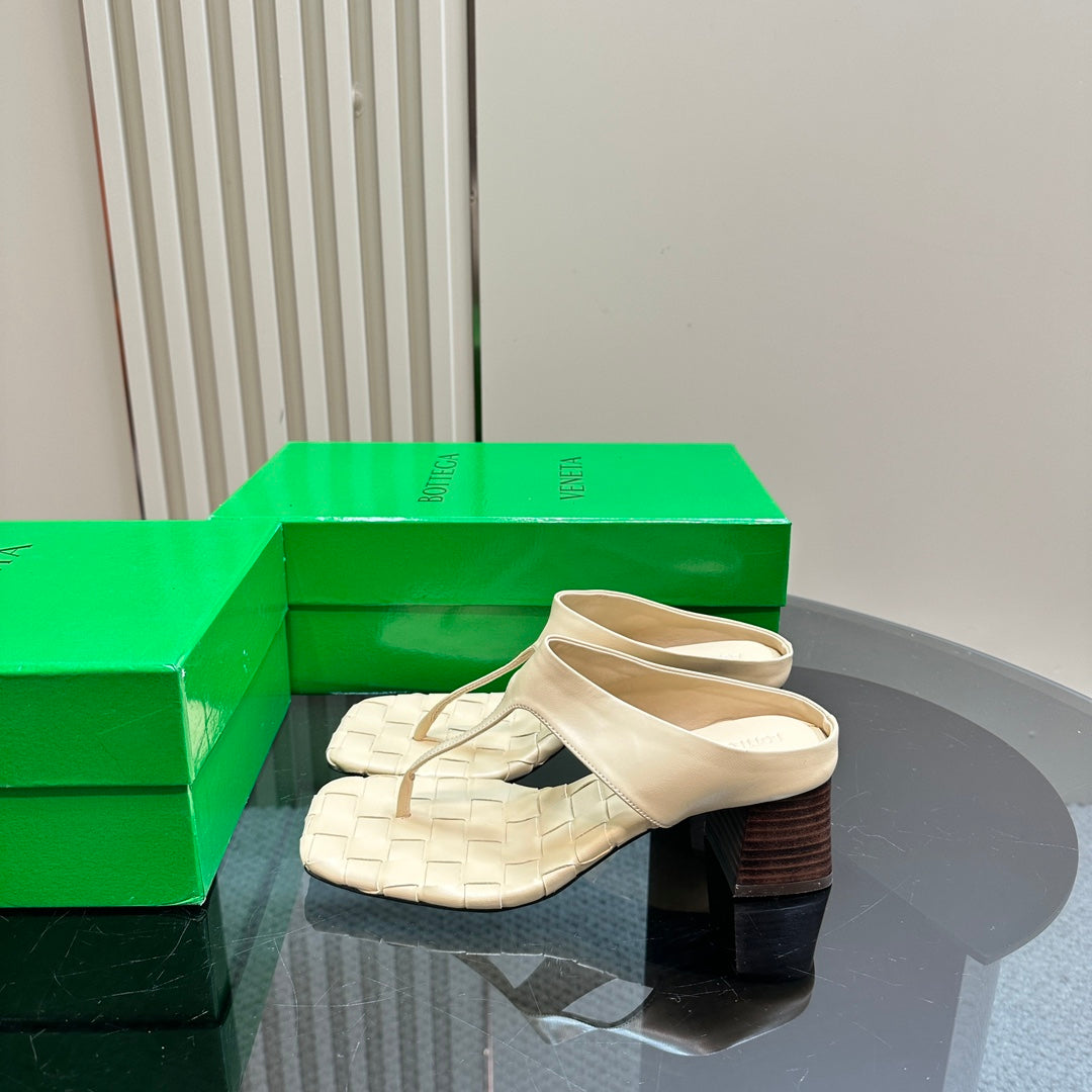 MARELLA THONG IN BISQUE BEIGE LEATHER WITH SIGNATURE INTRECCIATO INSOLE 55 MM