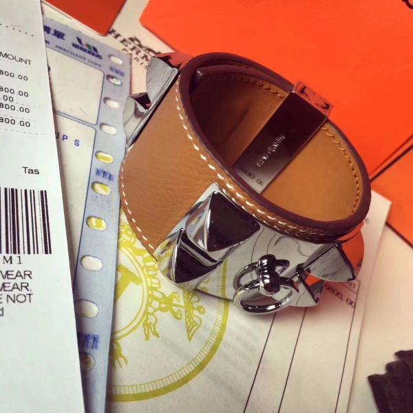 HERM Brown Epsom Collier de Chien Bracelet Size S
