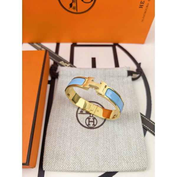 HERM Blue Ciel Enamel Clic H Bracelet