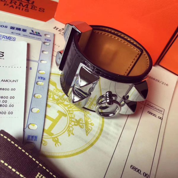 HERM Black Crocodile Collier de Chien Bracelet Size S