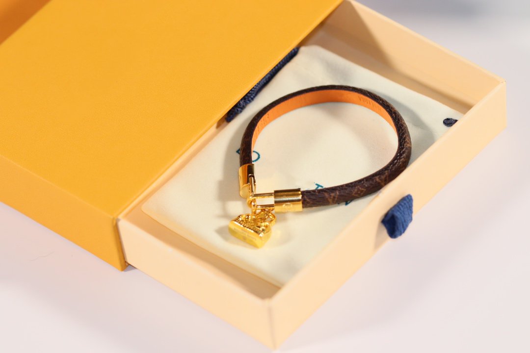LV CRAZY LOCK LEATHER GOLD BRACELET
