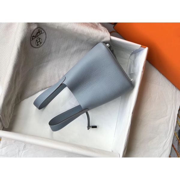 HERM Picotin Lock 18 Bag In Blue Lin Clemence Leather
