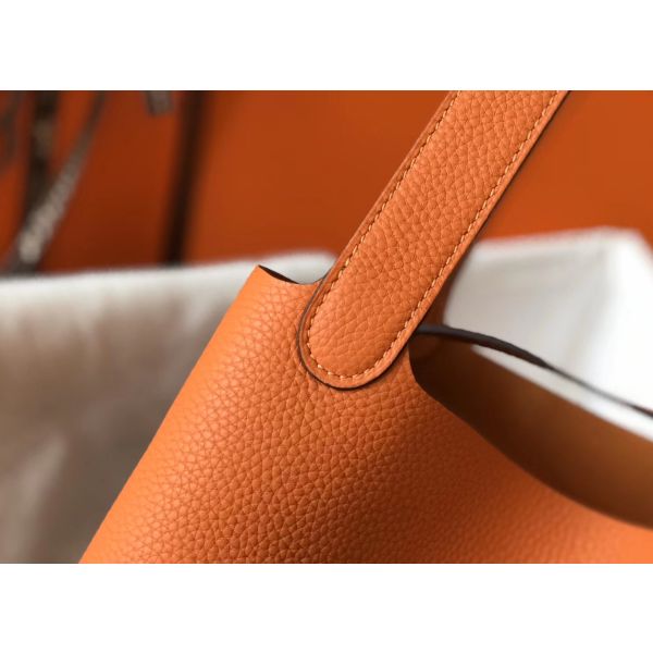 HERM Picotin Lock 18 Bag In Orange Clemence Leather