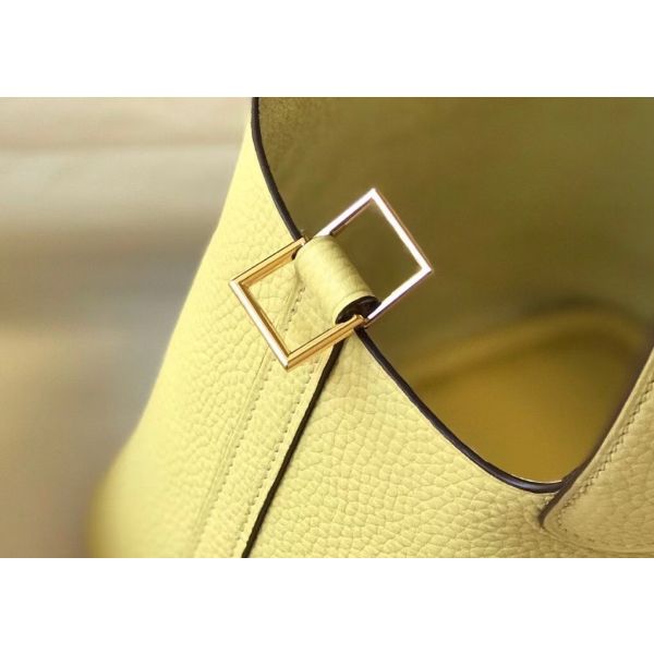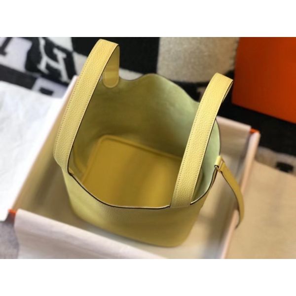 HERM Picotin Lock 22 Bag In Jaune Poussin Clemence Leather