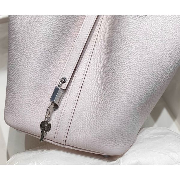 HERM Picotin Lock 22 Bag In Mauve Pale Clemence Leather
