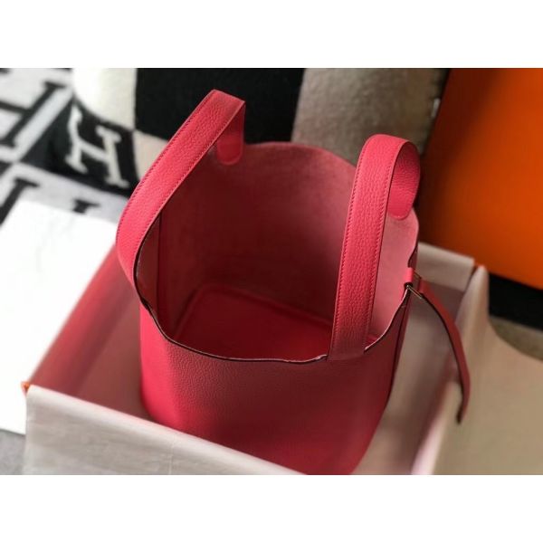 HERM Picotin Lock 22 Bag In Rose Lipstick Clemence Leather