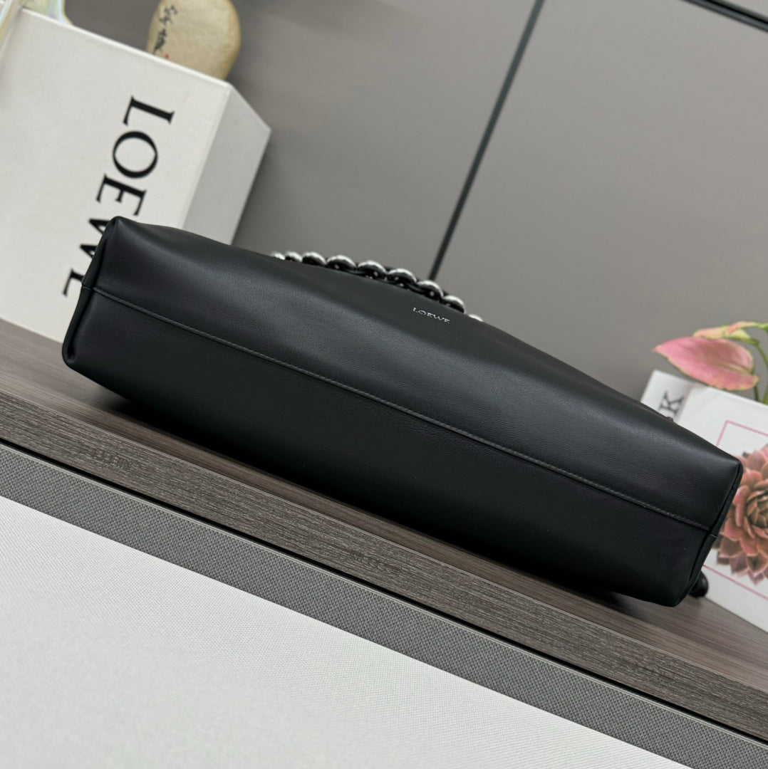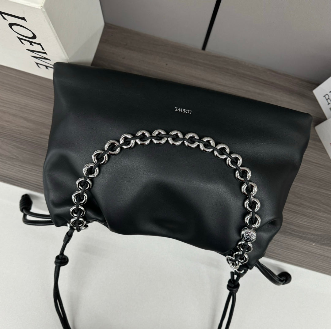 LOE LARGE 41 FLAMENCO PURSE BUCKET IN BLACK LAMBSKIN SILVER HARDWARE
