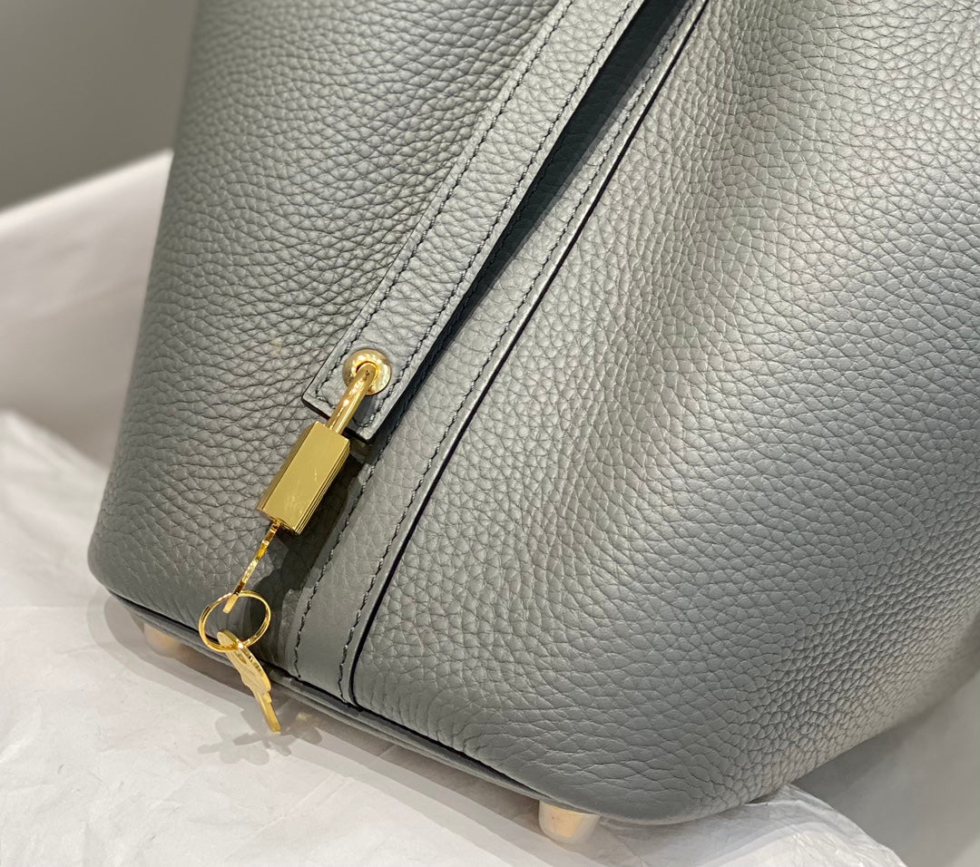 - Color: grey color, gold hardware