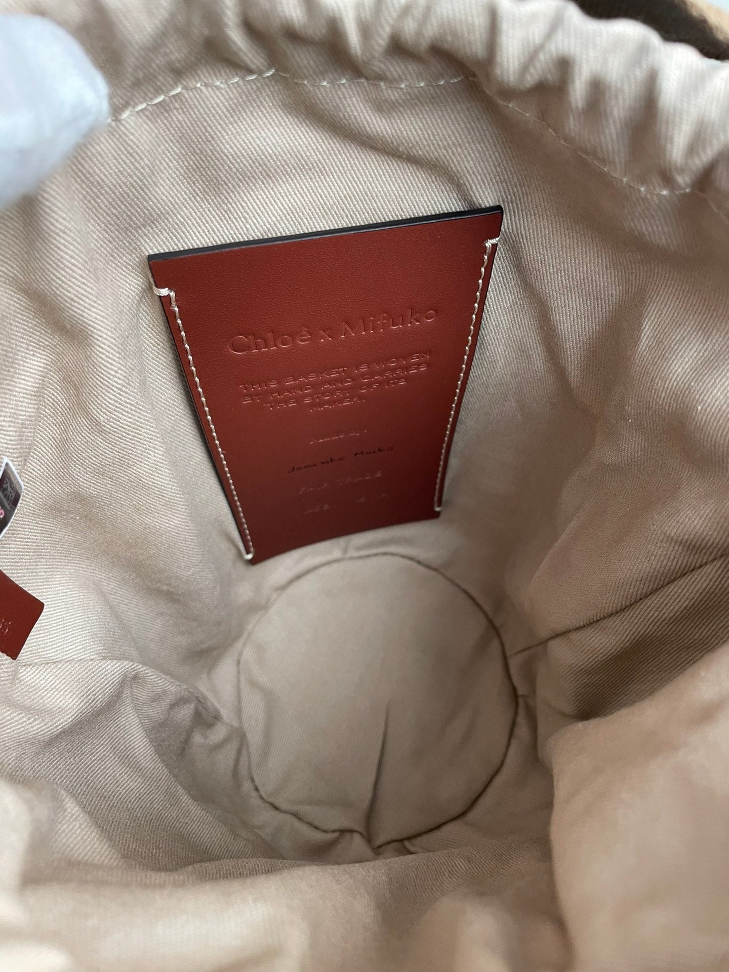 SMALL WOODY BASKET 17 IN BROWN AND WHITE FIBERS BROWN WEBBING BLACK CALFSKIN