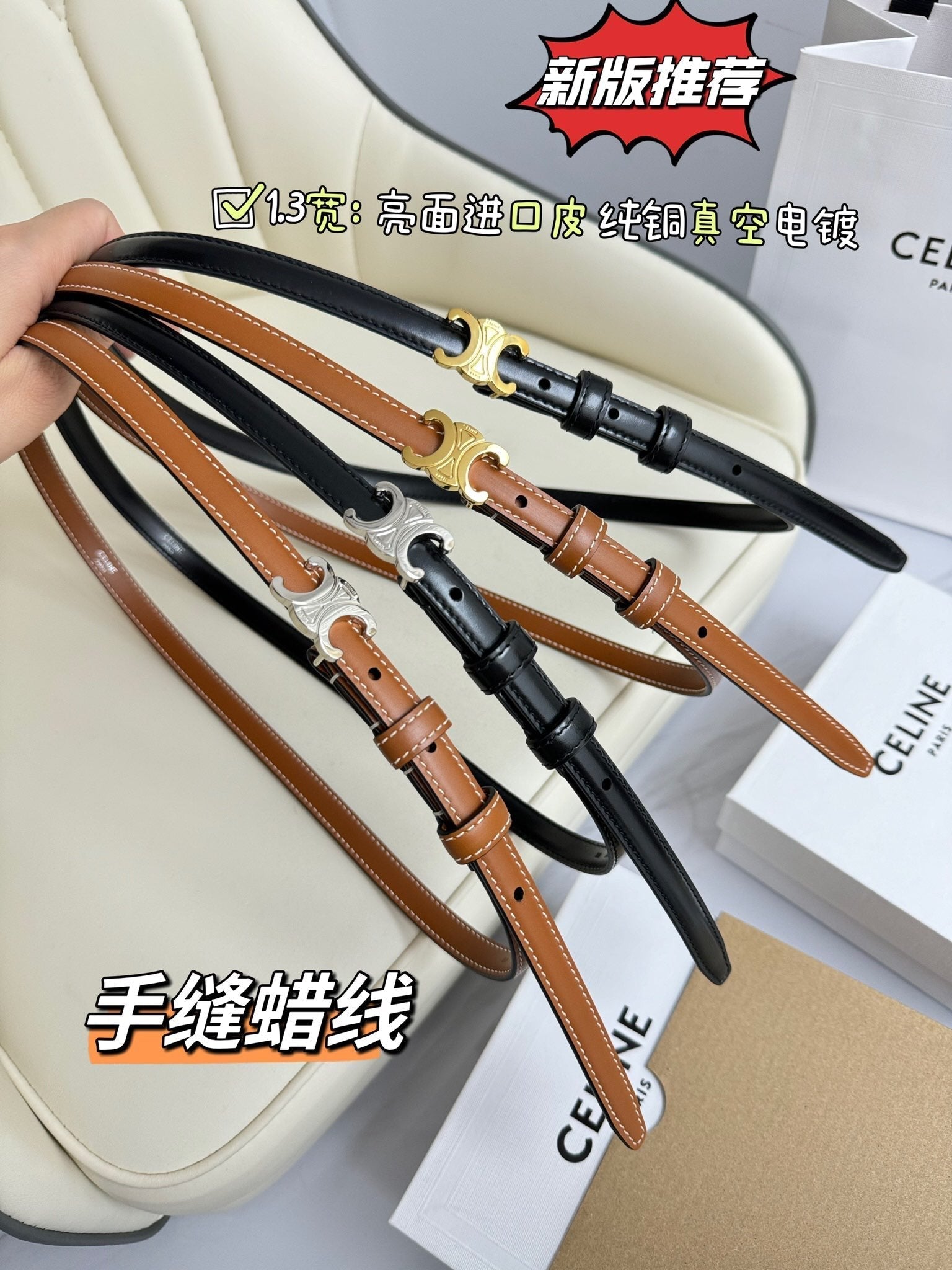 • Buckle in permabrass plated metal.