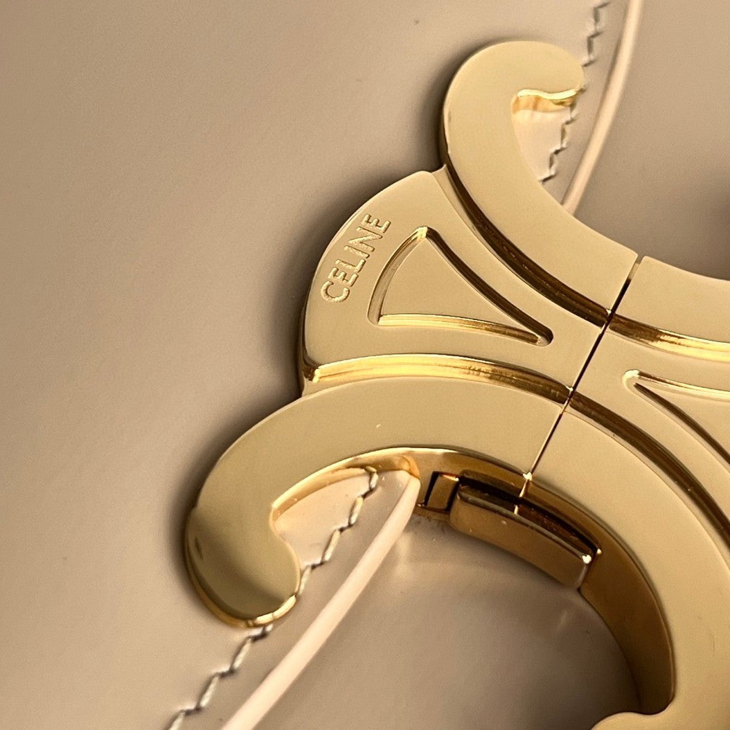- TRIOMPHE 15 Cream Gray Calfskin Handbag