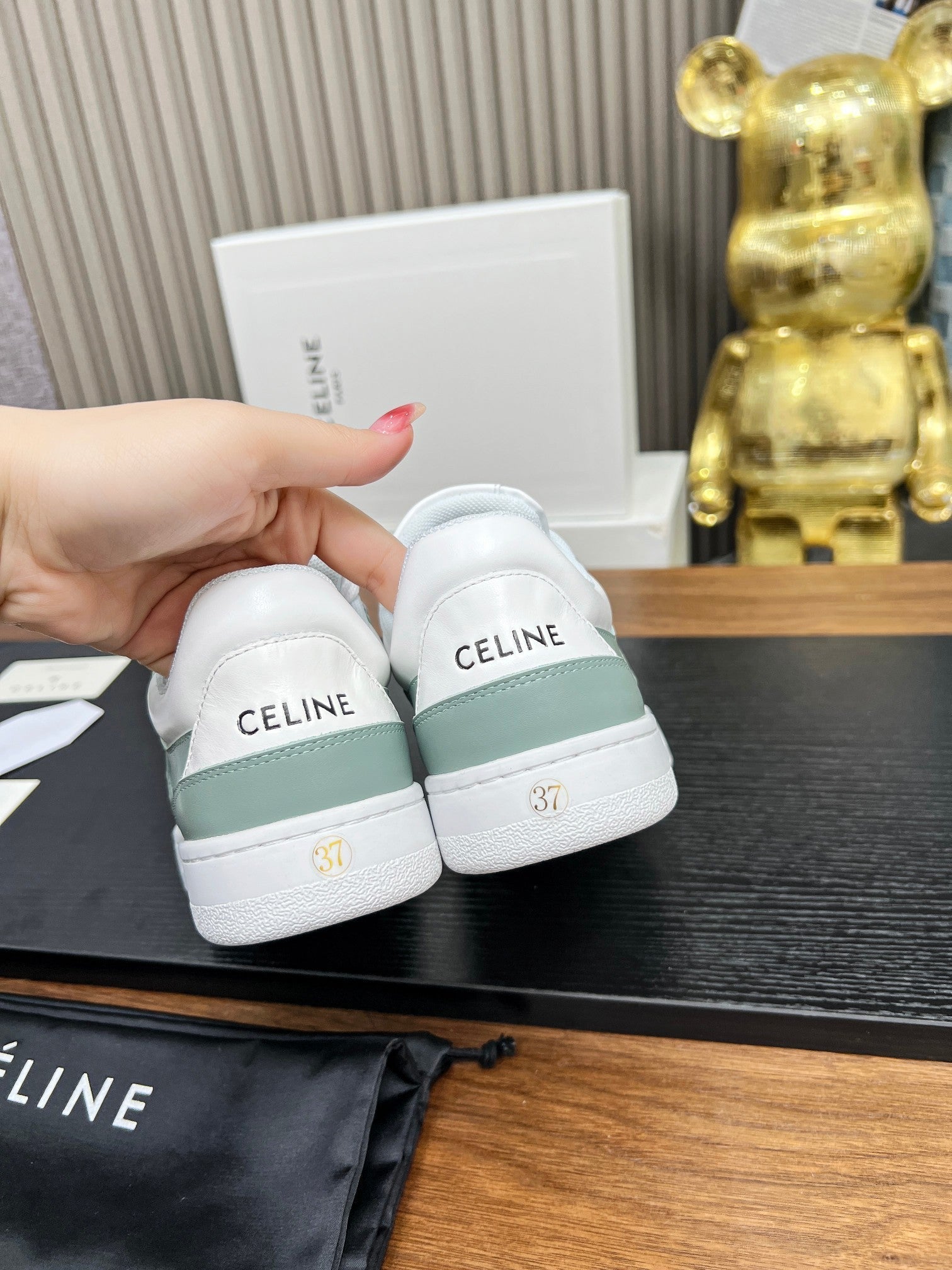 SNEAKER WITH TRIOMPHE IN WHITE MIX PEWTER GREEN CALFSKIN