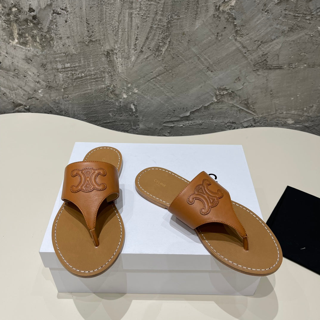 WOMEN TRIOMPHE FLAT THONG IN CALFSKIN DARK BROWN
