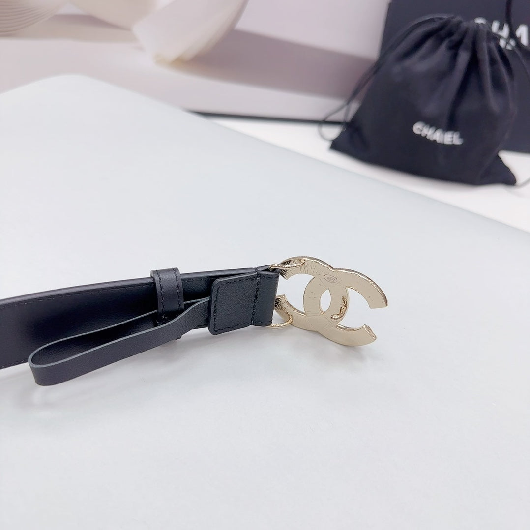 CC 30MM BELT IN BLACK SMOOTH CALFSKIN METAL LOGO GOLD HARDWARE
