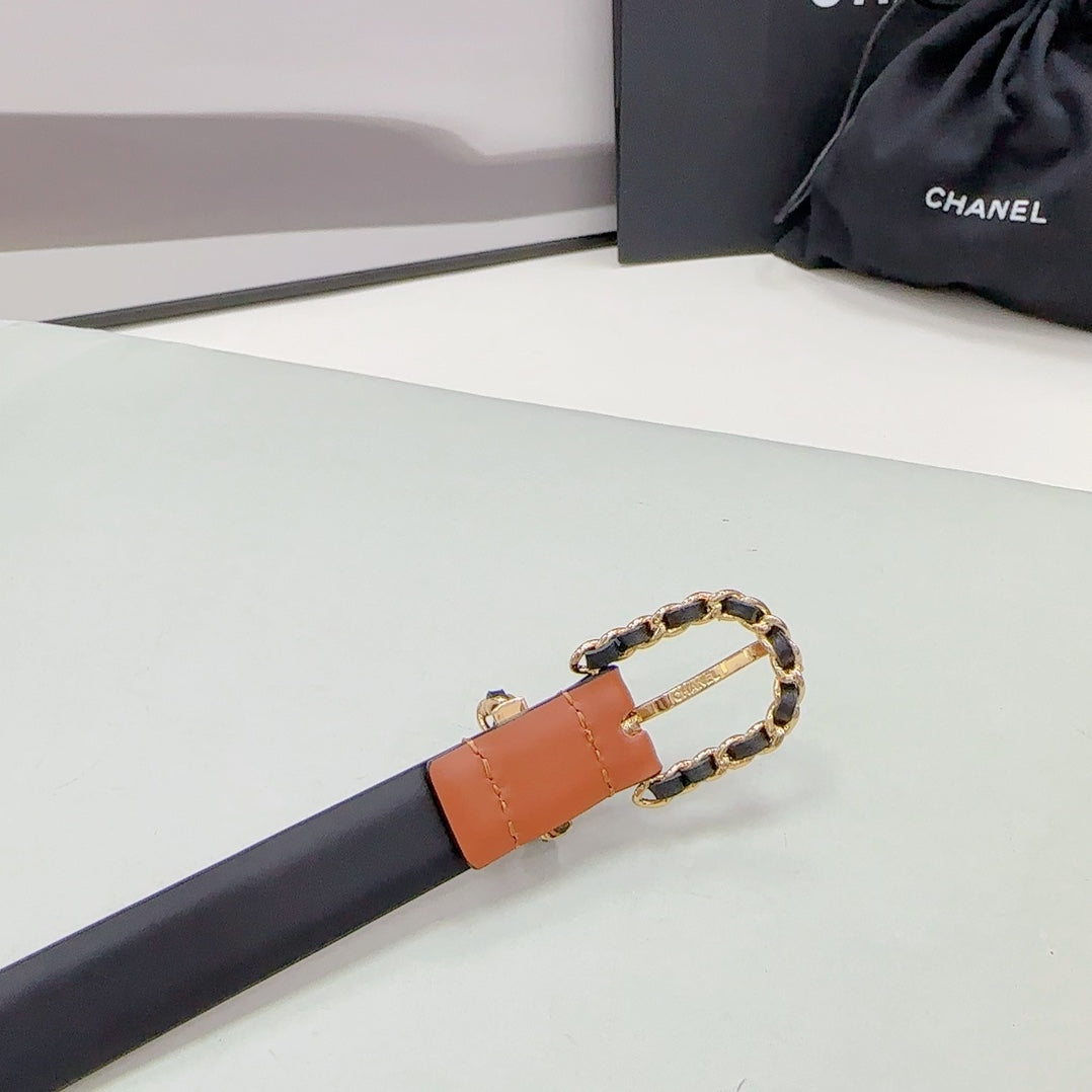 CC BELT 20 MM IN BRONZE BROWN MIX BLACK CALFSKIN GOLD HARDWARE