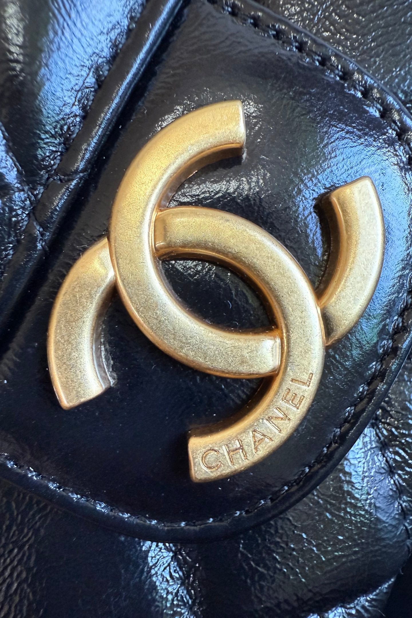 - CC Black Wavy Charm Shiny Crumpled Hobo Large Bag