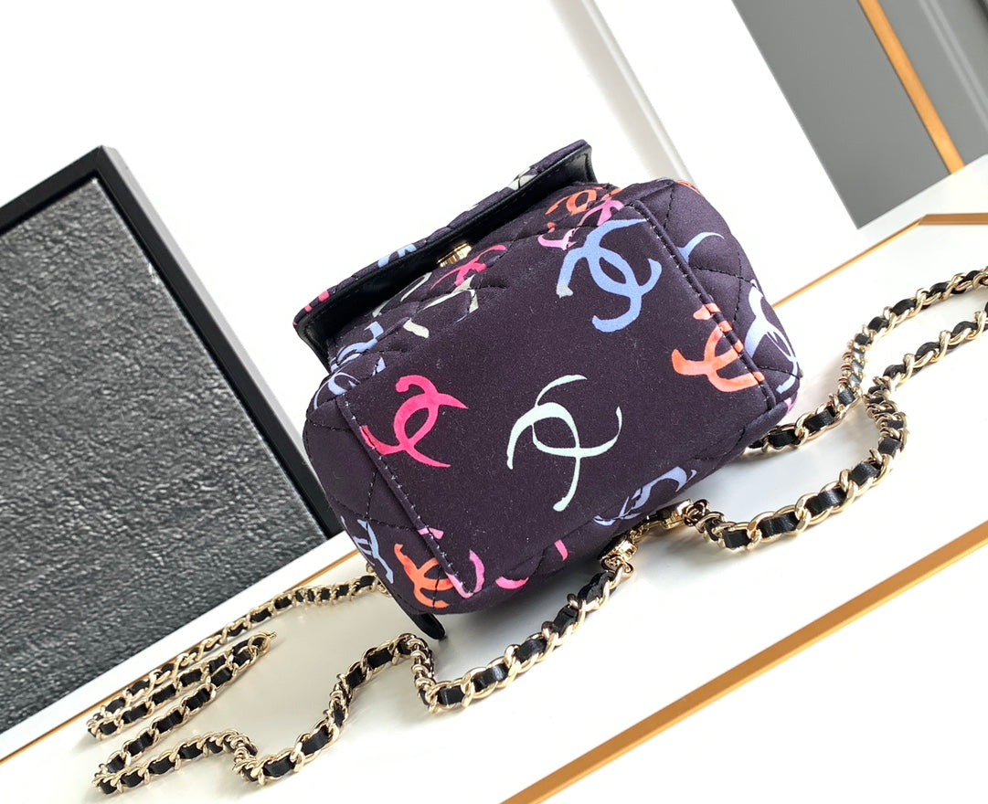 • CC CLASSIC MINI 18 BACKPACK COLORFUL WOOL COTTON MIXED FIBERS GOLD TONE METAL