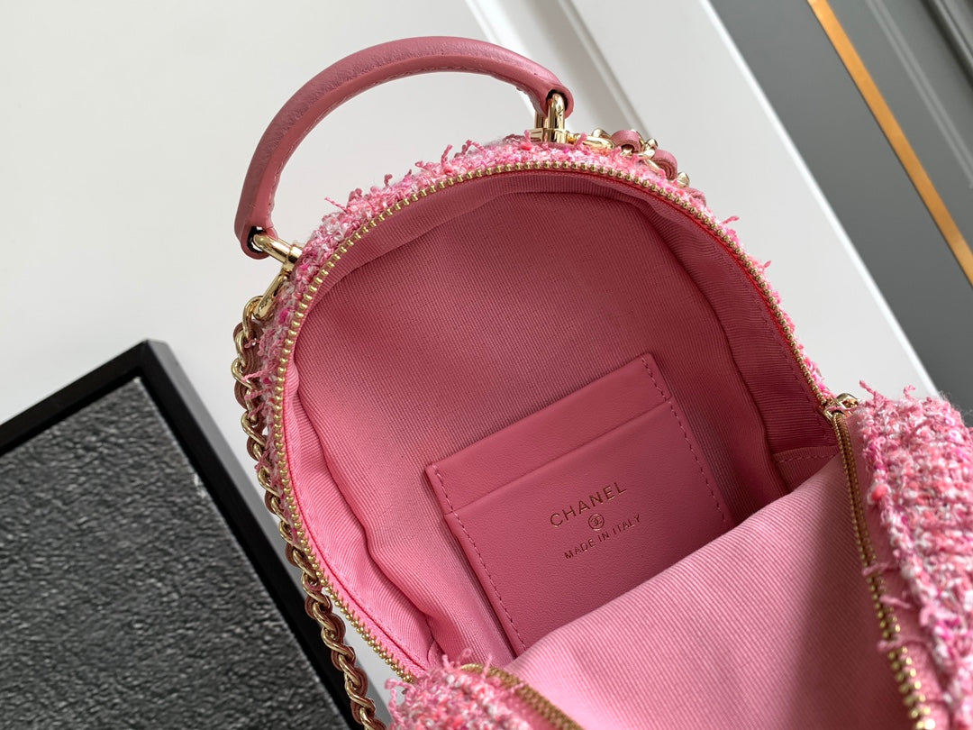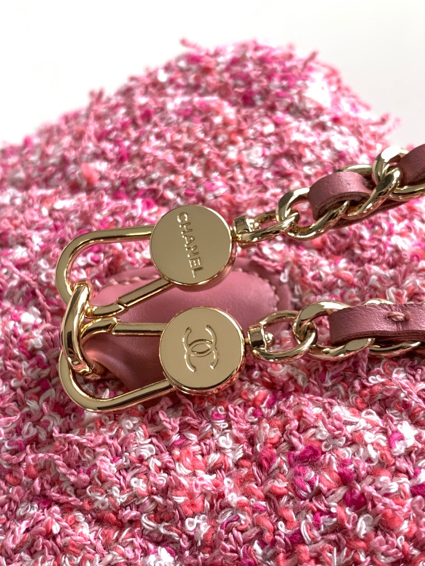 • CC CLASSIC MINI 18 BACKPACK LIGHT PINK WOOL TWEED MIXED FIBERS GOLD TONE METAL