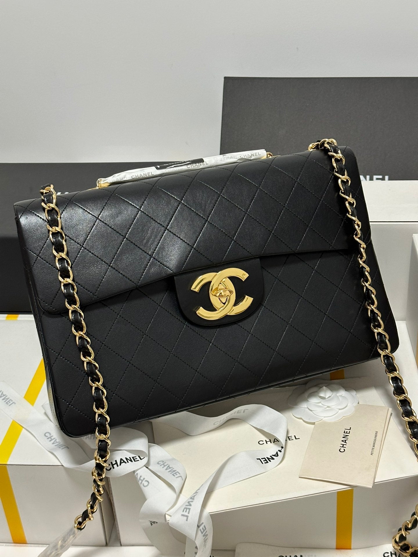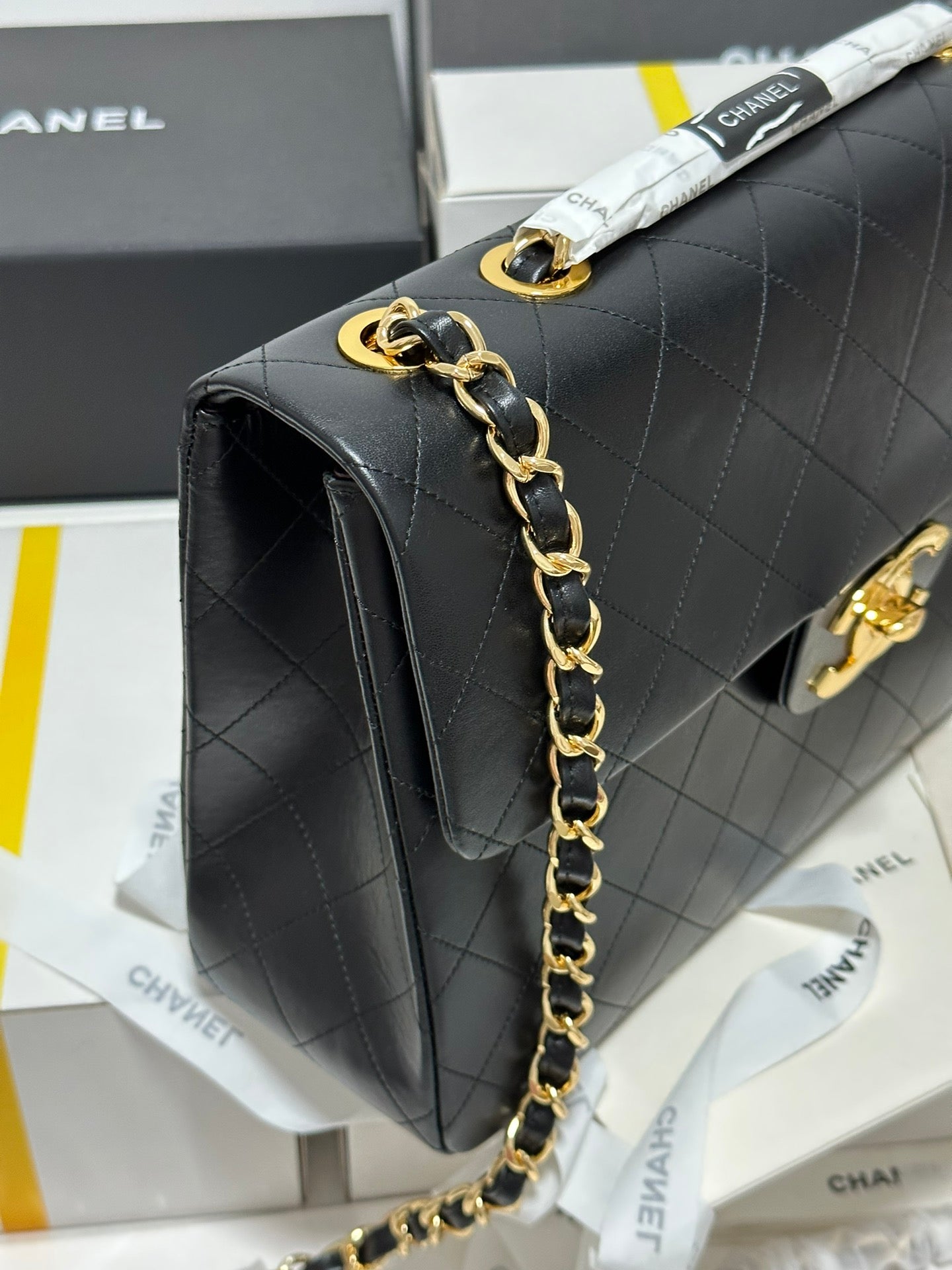 CC MAXI FLAP BAG 34 IN BLACK CALFSKIN