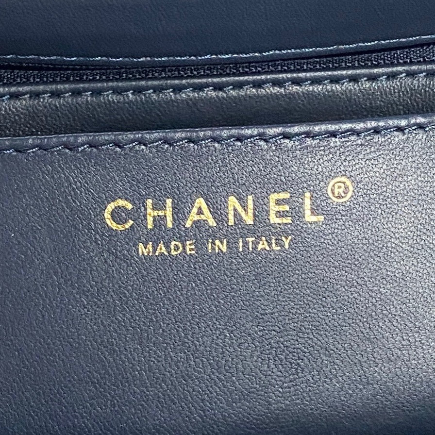 RETRO STYLE FLAP BAG 22 IN NAVY BLUE GRAINED CALFSKIN GOLD HARDWARE
